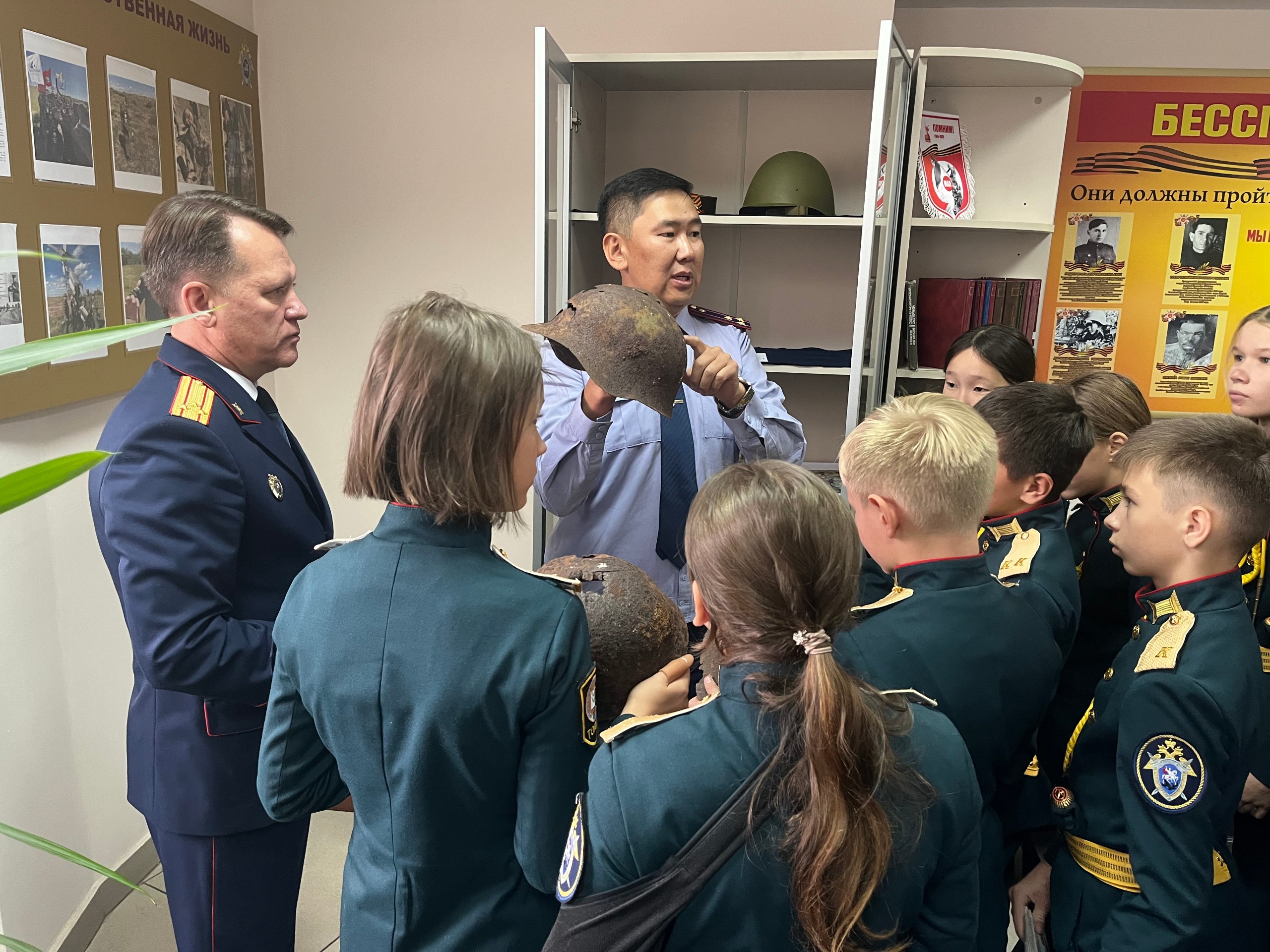 Сотрудниками следственного управления в стенах ведомства создан музей. Один из разделов музея посвящен истории следствия, в нем представлены старые книги, архивные документы, а также криминалистическая техника, которая использовалась десятилетия назад. Кадеты с увлечением разглядывали предметы, которых раньше никогда не видели, а ветераны следствия рассказывали интересные истории из следственной практики с использованием того или иного экспоната. Затем посетители перешли ко второму отделению выставки, посвященному поисковой и архивной работе. Сотрудники, которые принимали участие в поисковых мероприятиях, рассказали посетителям музея про находки и их историю.