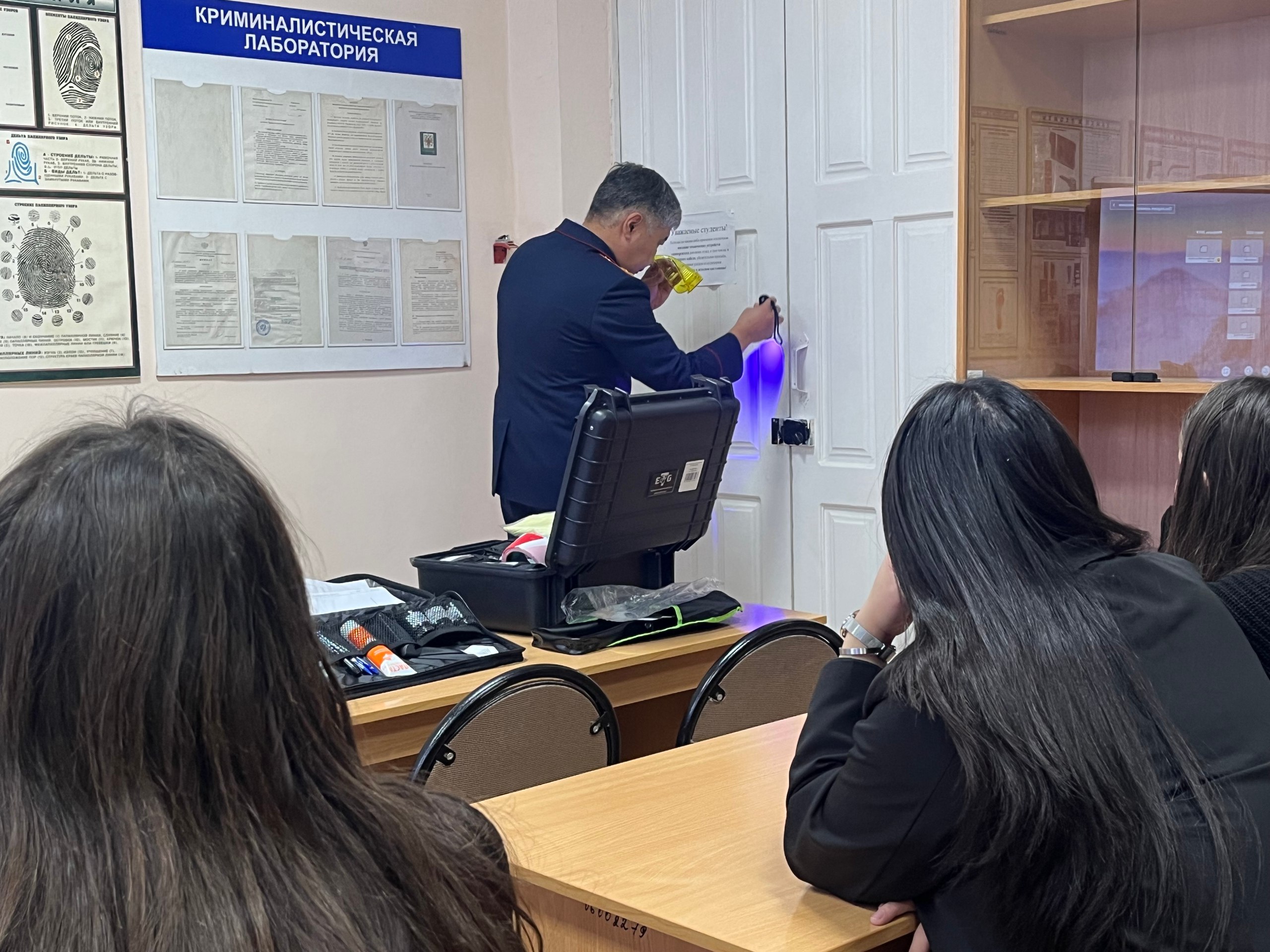 Следователь-криминалист во время встречи со студентами рассказал о своей профессии, а также провел занятие по методике осмотра места происшествия