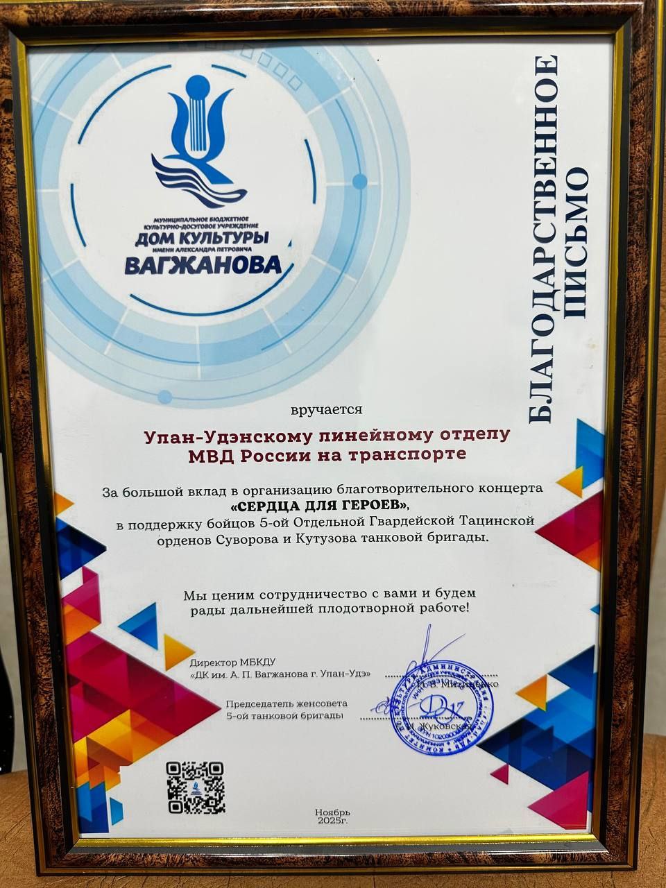 Сотрудники Улан-Удэнского ЛО МВД России на транспорте посетили благотворительный концерт в поддержку участников СВО "Сердца для героев"