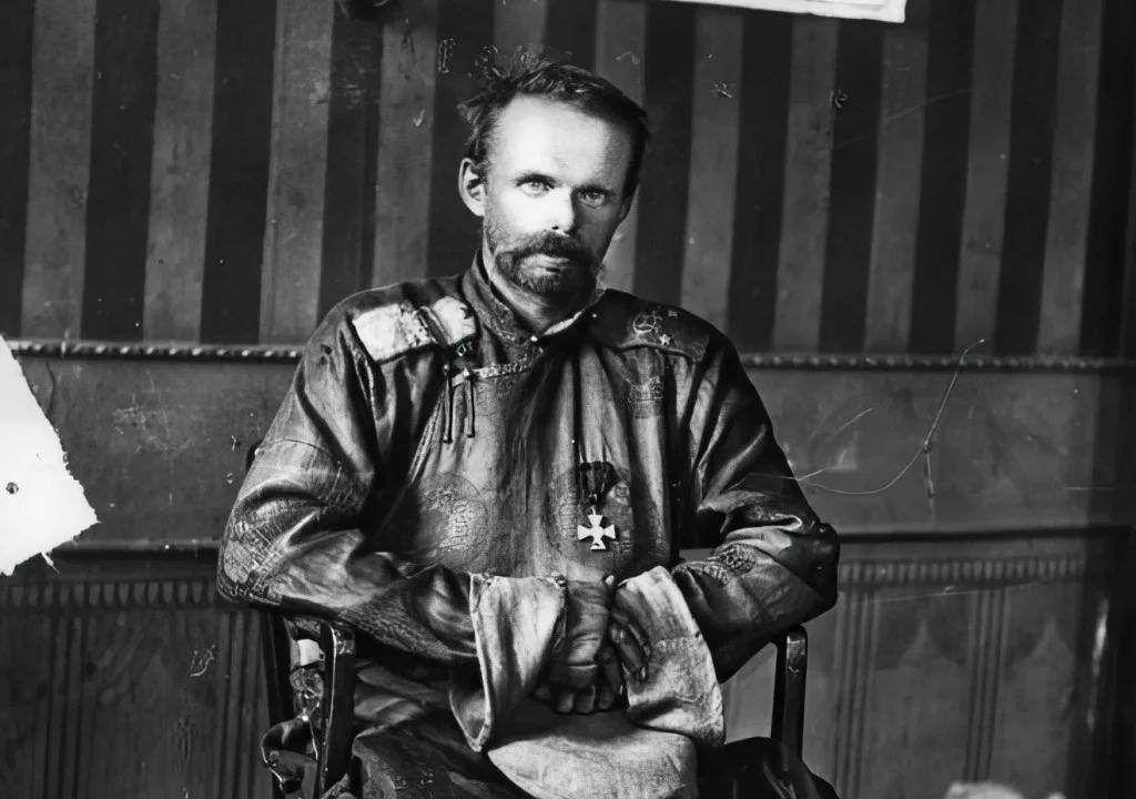 Революция застаёт Унгерна на службе в Маньчжурии. Он участвует в белом движении и формирует «Азиатскую дивизию», отдавая предпочтение инородцам-кочевникам, бурятам и монголам. (Вспомним, что буряты и якуты отлично воюют и на СВО). Когда белые терпят поражение от красных, барон вместе со своей дивизией уходит в Монголию.