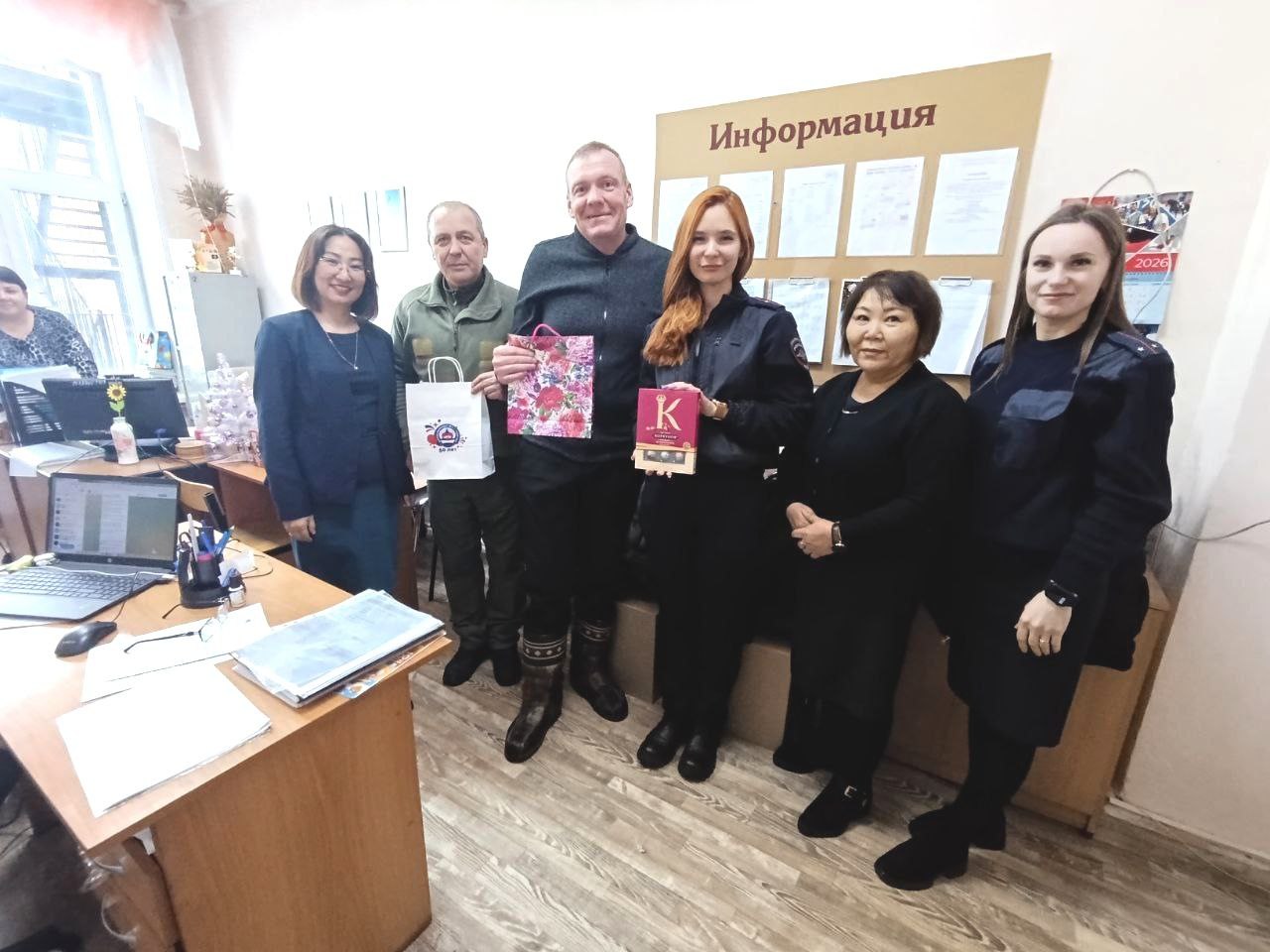 Накануне офицеры вместе с членами Боевого братства посетили специальную коррекционную школу-интернат №2 г. Улан-Удэ. Они поздравили учителей и детей с Новым годом. Воспитанникам подарили сладкие подарки и сертификаты в магазин игрушек.