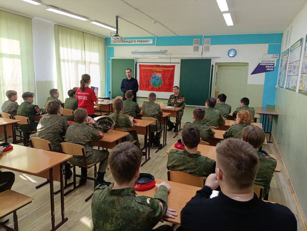 Сотрудники и ветераны Улан-Удэнского ЛО МВД России на транспорте провели патриотическое занятие с учениками школы №7 г. Улан-Удэ. Ребята из школьного движения "Волонтерская рота" с радостью встретили гостей в погонах.