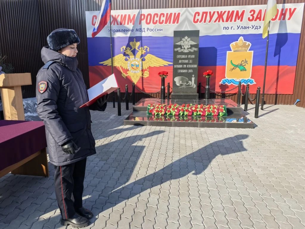 На территории Управления МВД России по г. Улан-Удэ состоялся торжественный ритуал приведения к Присяге молодых сотрудников и присвоения им первых специальных званий. Мероприятие прошло у Мемориала памяти сотрудников городского Управления, погибших при исполнении служебного долга.