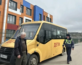 2026 год - инспектор Кожухов Д.Ю. проводит инструктаж перед поездкой школьного автобуса.