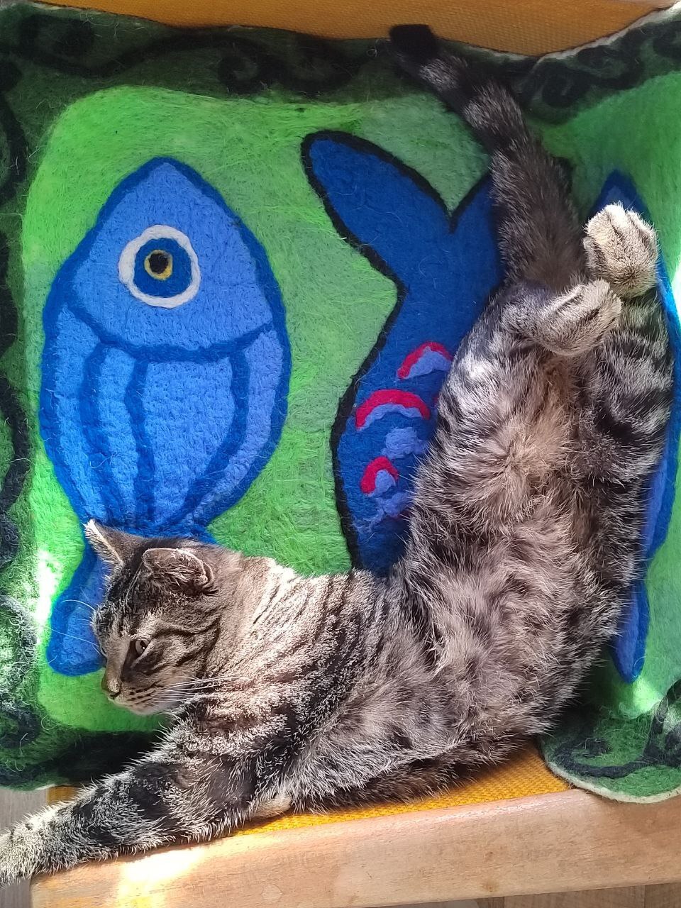 Котику Самсону - пушистому «хранителю» музея истории города Улан-Удэ - подарили коврик с рыбами.