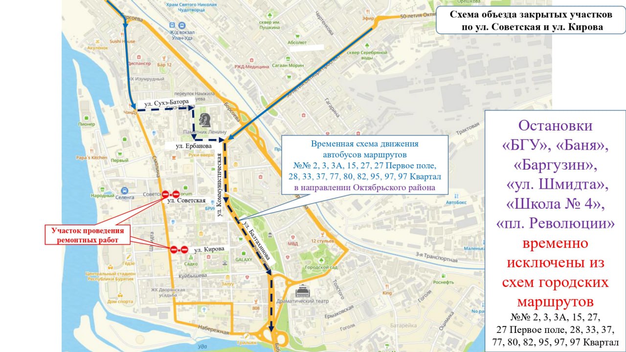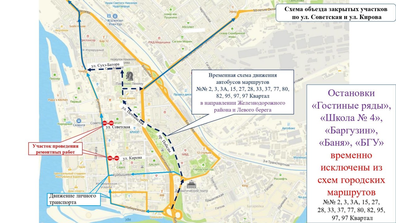 В центре Улан-Удэ перекроют движение на двух перекрестках