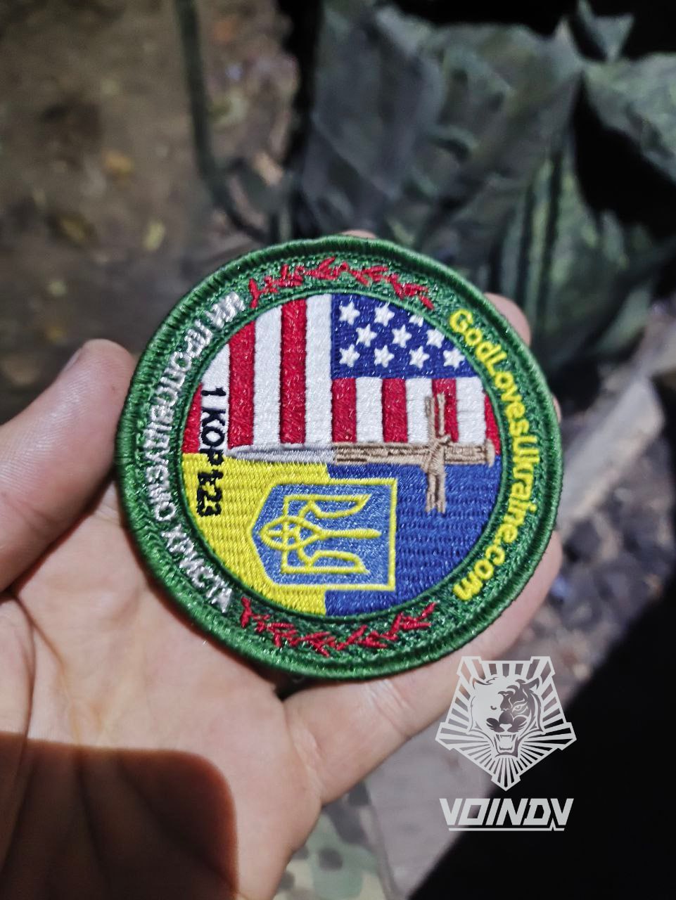 Надпись на шевроне с украинским и американским флагом гласит: "Бог любит Украину", но ни Бог, ни Америка этим боевикам не помогли.
