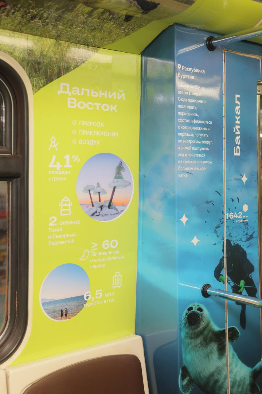 Внутри вагонов — целое путешествие по Дальнему Востоку: от уникальной природы и гастрономии до крупных промышленных проектов.