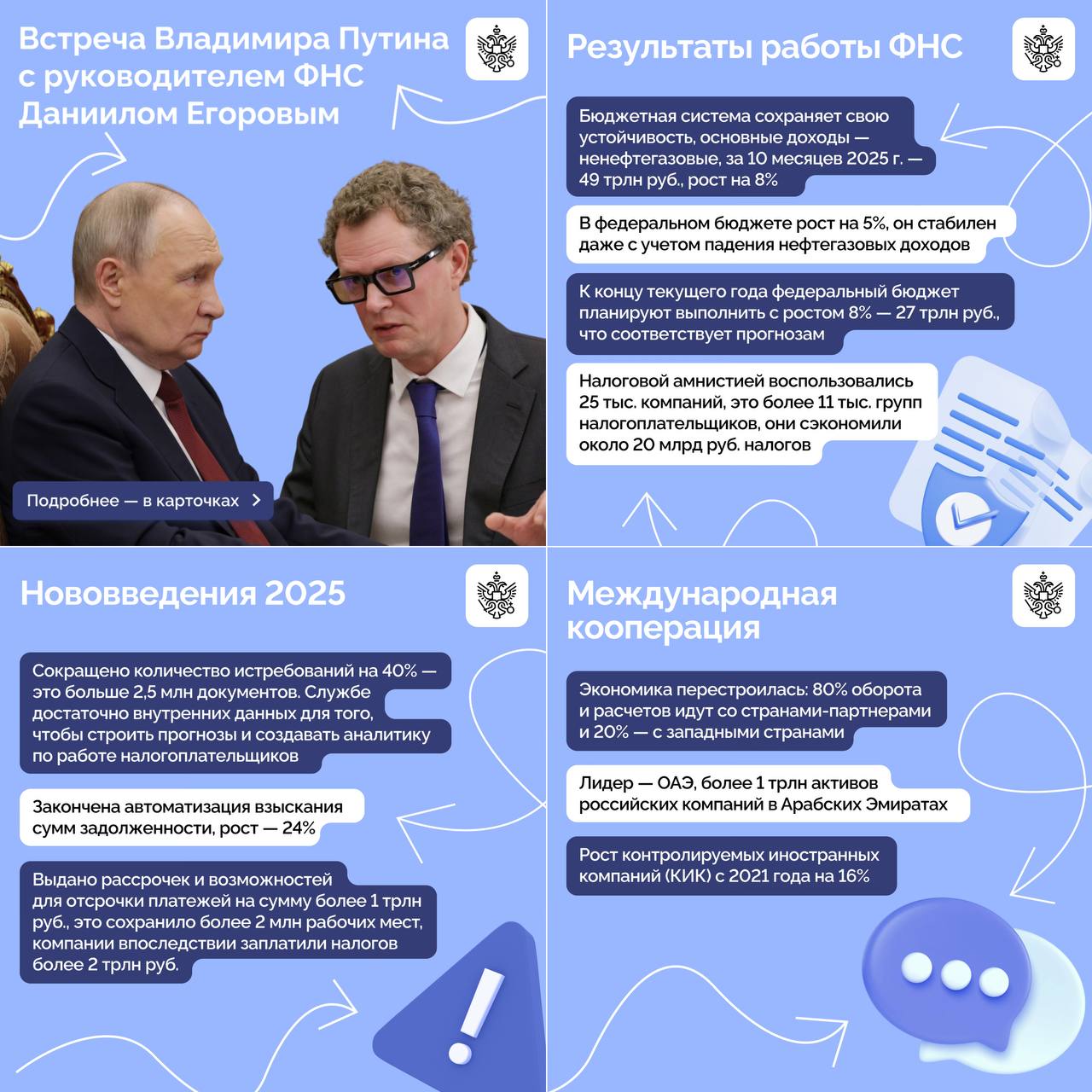 Президент провел рабочую встречу с руководителем Федеральной налоговой службы Даниилом Егоровым