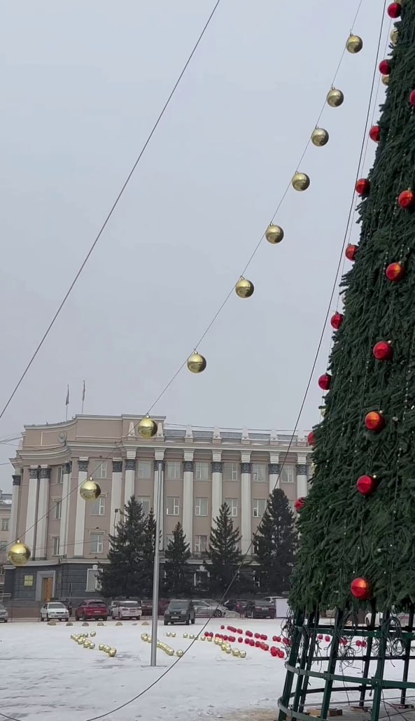 Ёлку в центре Улан-Удэ начали украшать шарами.