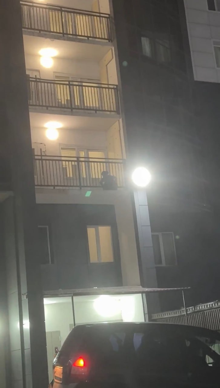 Её запечатлели на общем балконе дома на улице Смолина.