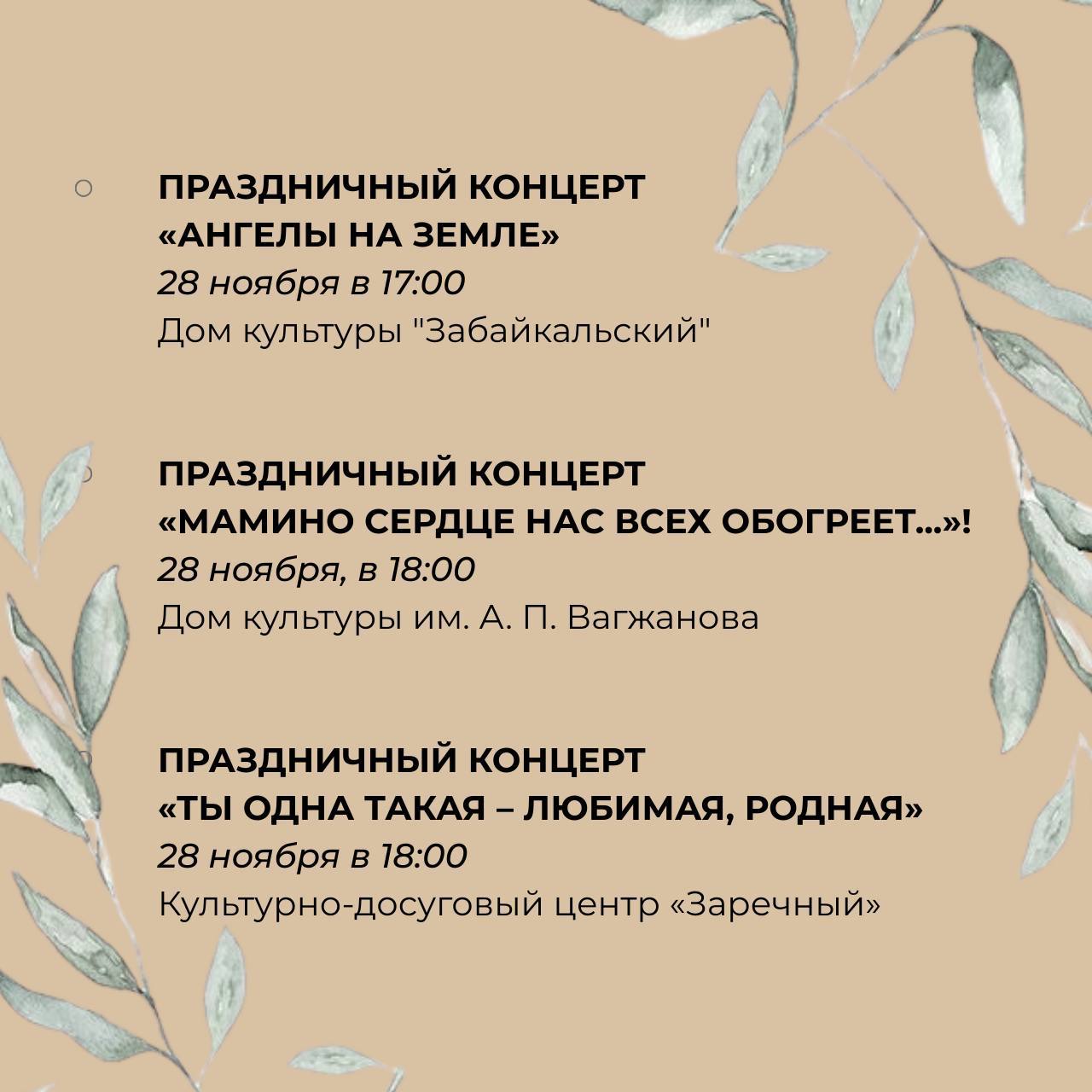 В Улан-Удэ пройдут праздничные концерты, посвящённые Дню матери.