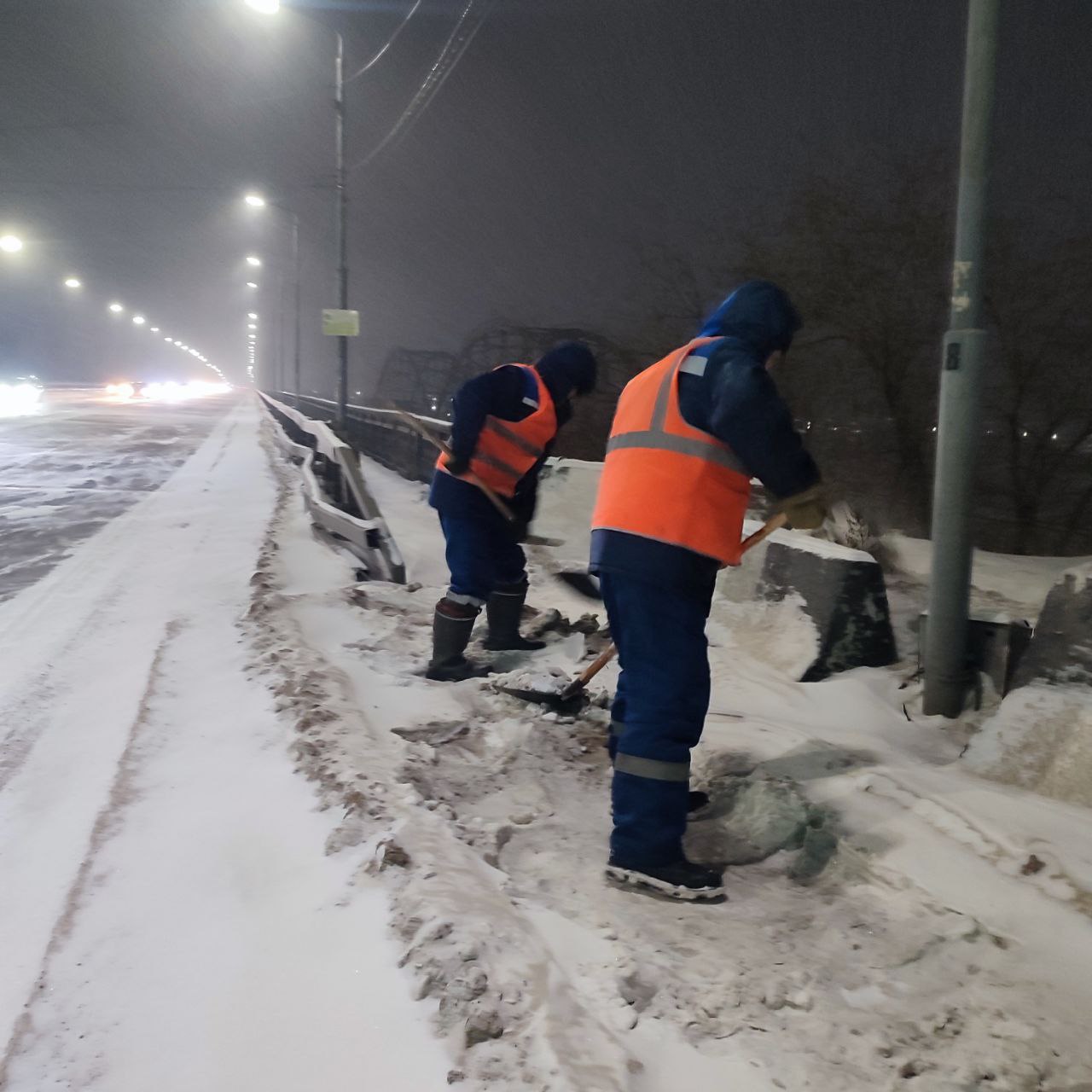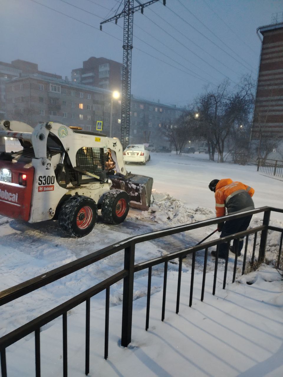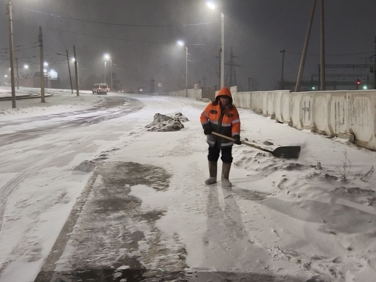 В 6:00 на уборку и подсыпку тротуаров вышли 120 уборщиков территорий Комбината по благоустройству и дворники управляющих компаний и ТСЖ.
