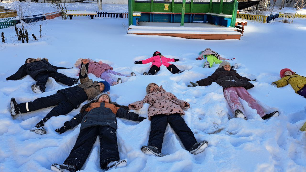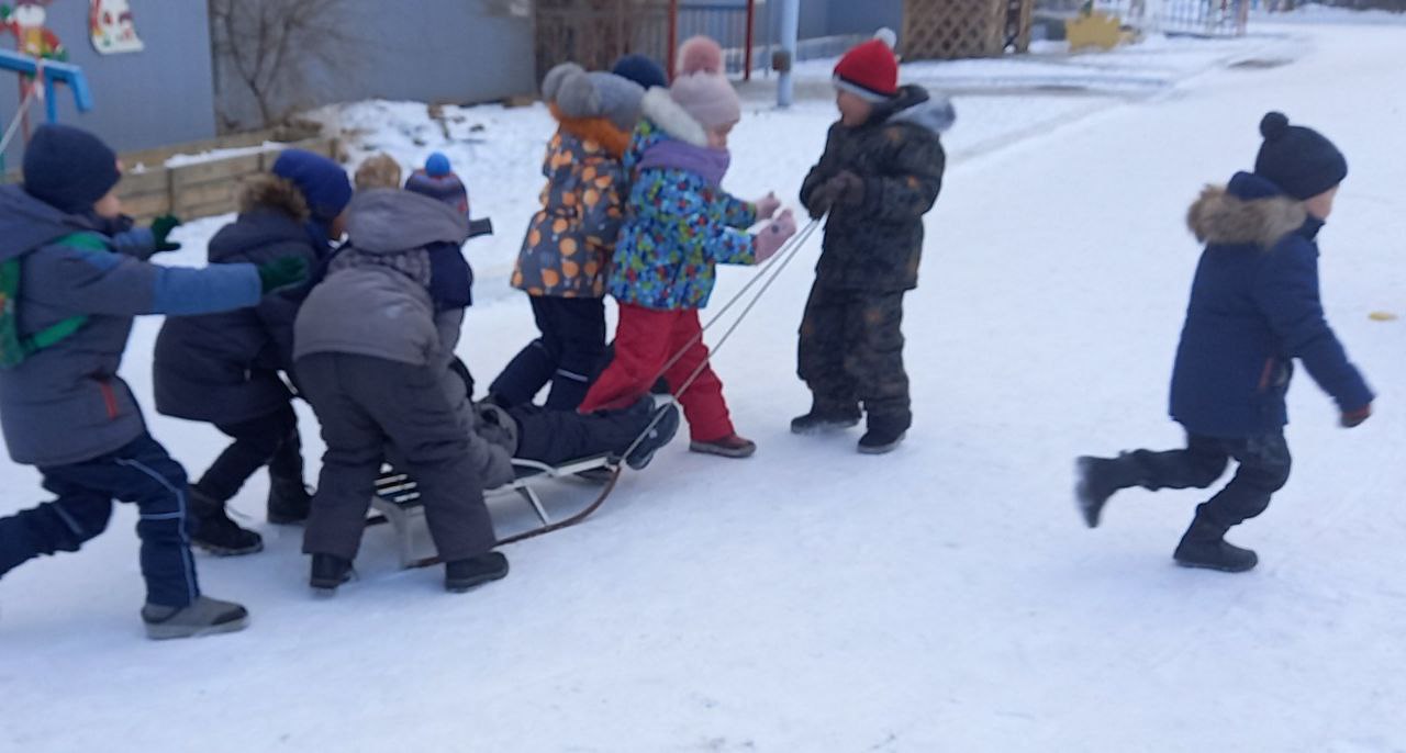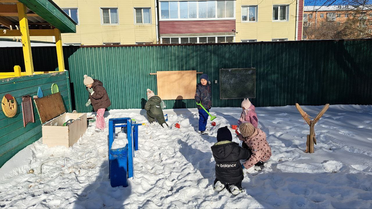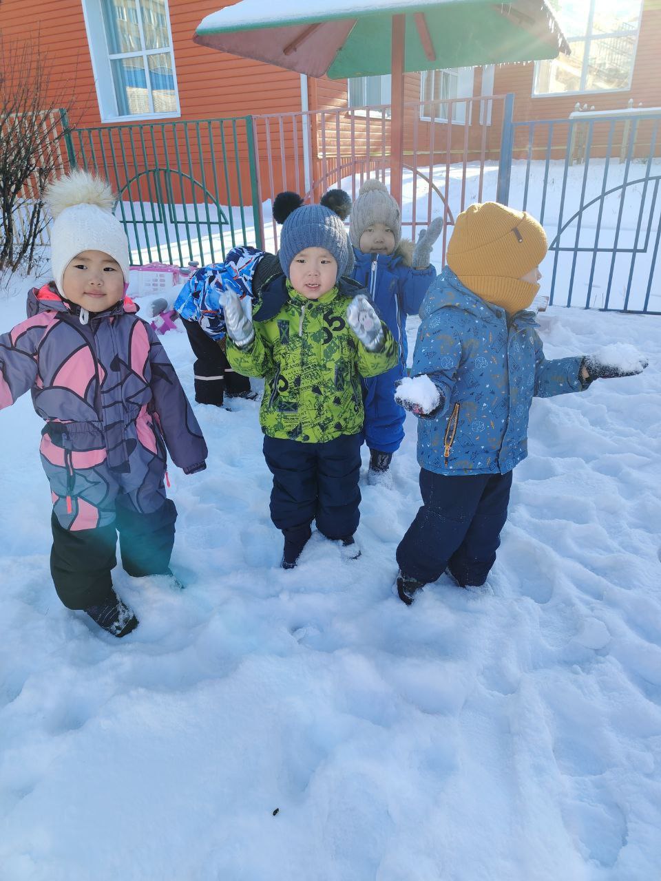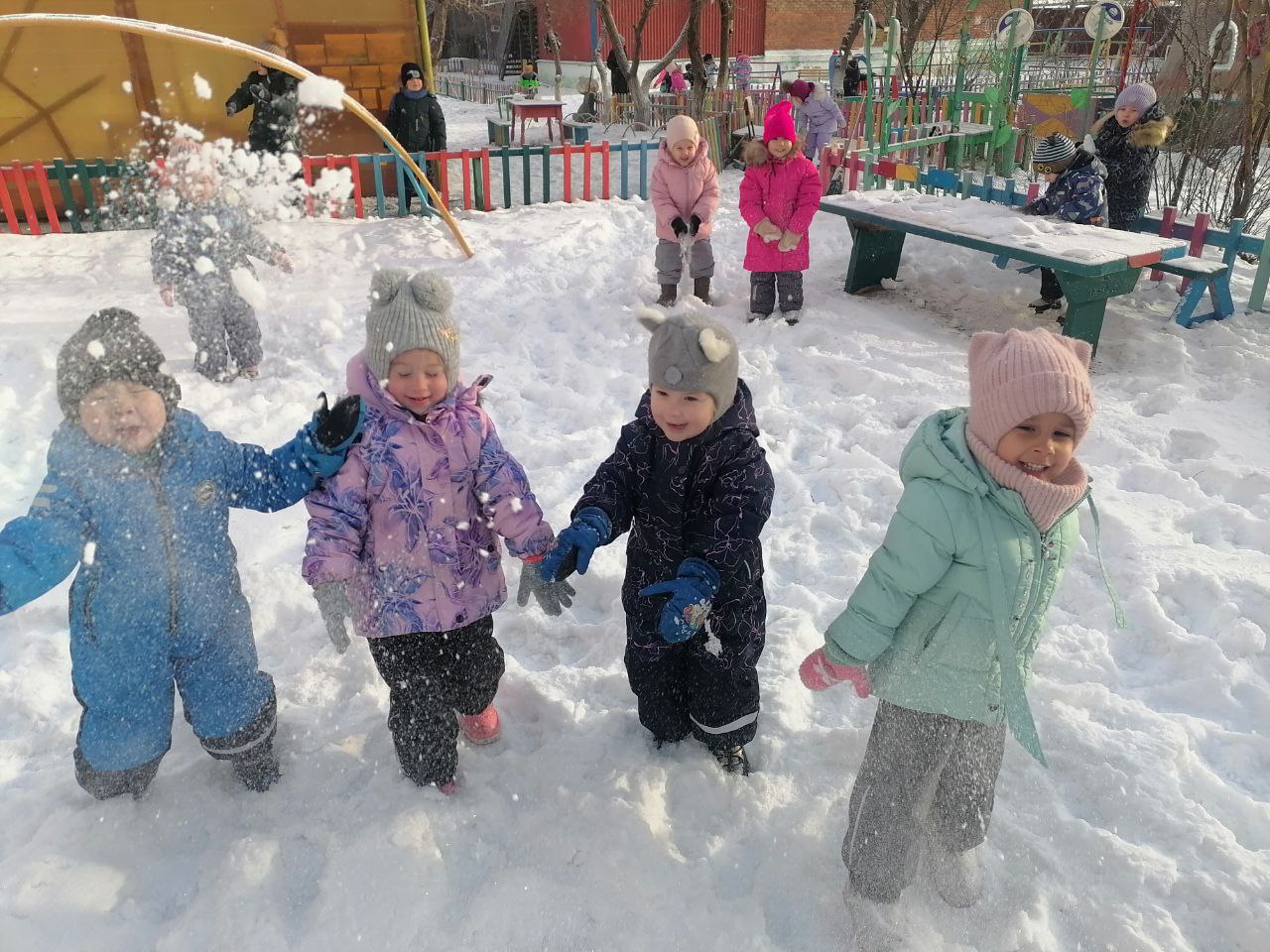 Дети городских садов наслаждаются настоящей зимней сказкой! Они лепят снеговиков, валяются в снегу и кидаются снежками.