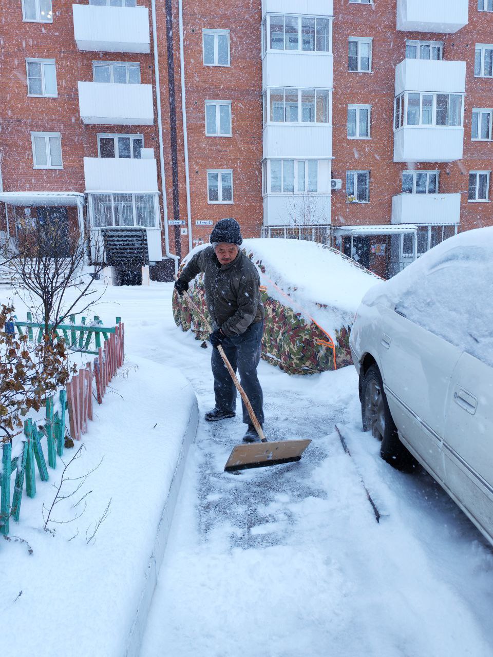 – Снега много. Потихоньку собираем и убираем, – говорит он.