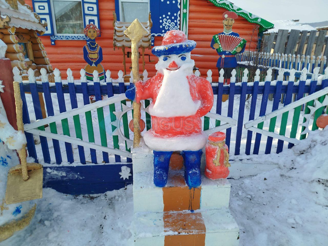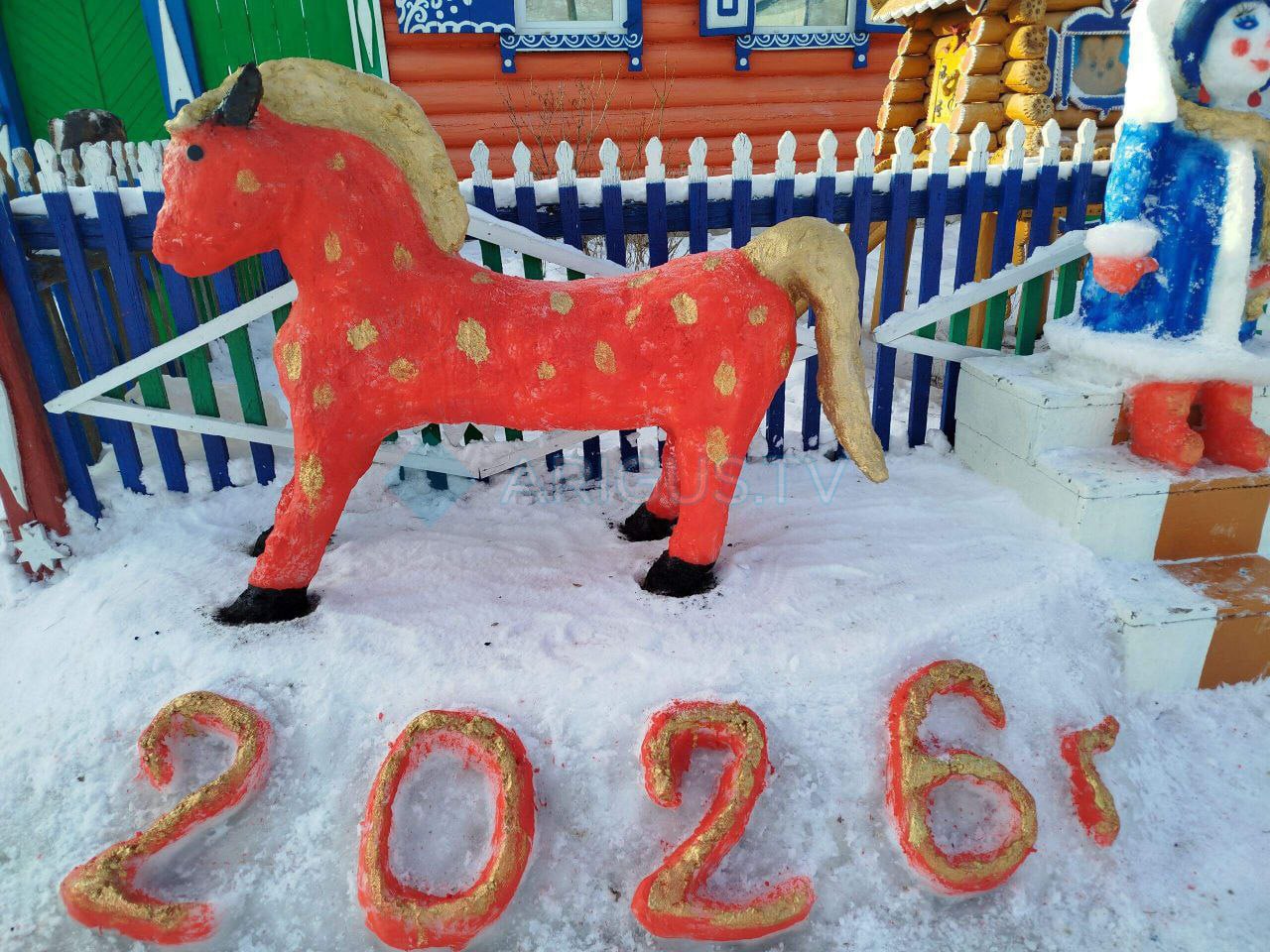 В селе Калиновка всё стабильно: из года в год жильцы одного из домов лепят и наряжают сказочных героев. И да, символ года тоже на месте.