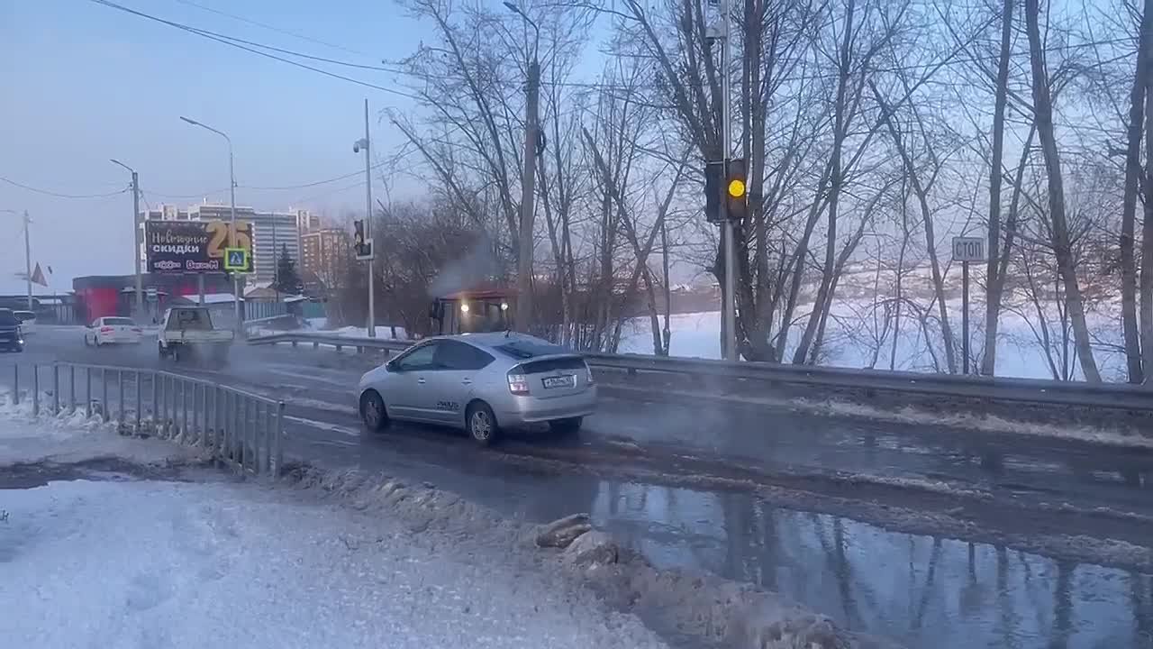 Предварительная причина - повреждение участка коммунальных сетей. Организованы уборка наледи и отсыпка дороги песком .