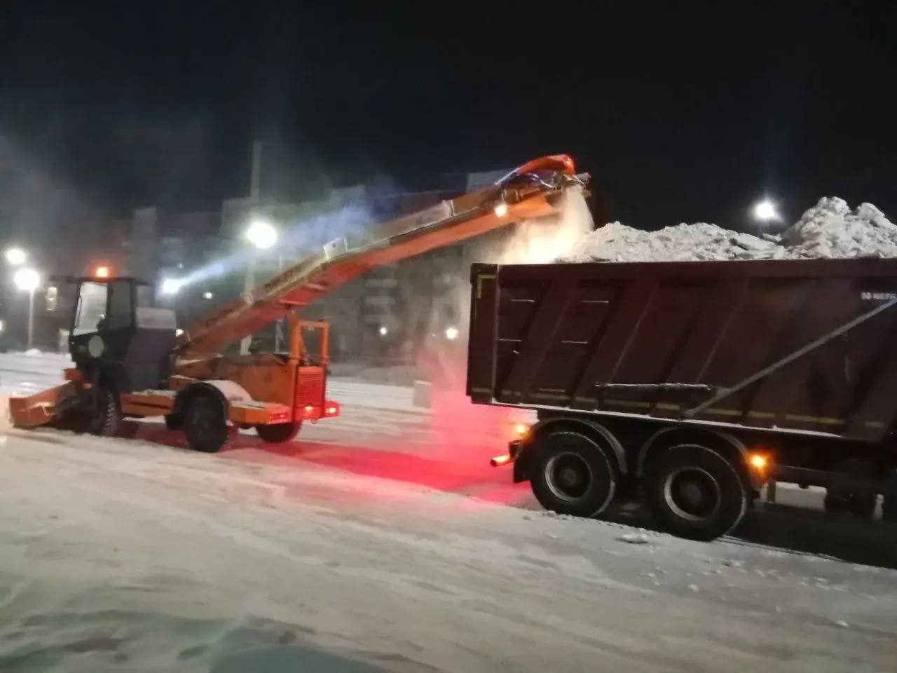 В ночь с 11 по 12 января снегоуборочные комплексы убирали снег с проспекта Строителей, улиц Конечная и Ключевская. В общем за ночь с этих улиц вывезено 300 кубометров снега.