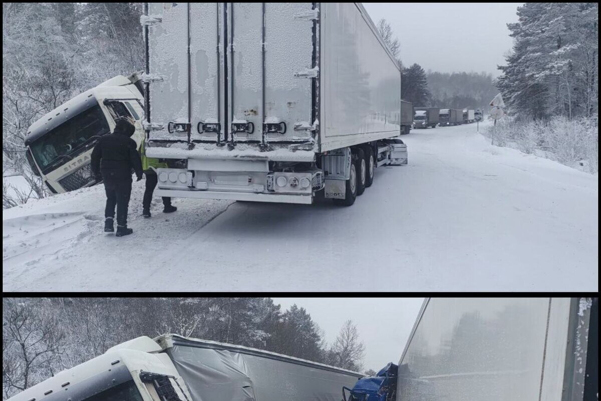 В связи с ДТП и неблагоприятными погодными условиями на данном участке введено реверсивное движение. В Госавтоинспекции также отмечают, что сильные морозы и плохая видимость затрудняют работу дорожной техники, а поломки большегрузных автомобилей дополнительно осложняют обстановку на трассе.