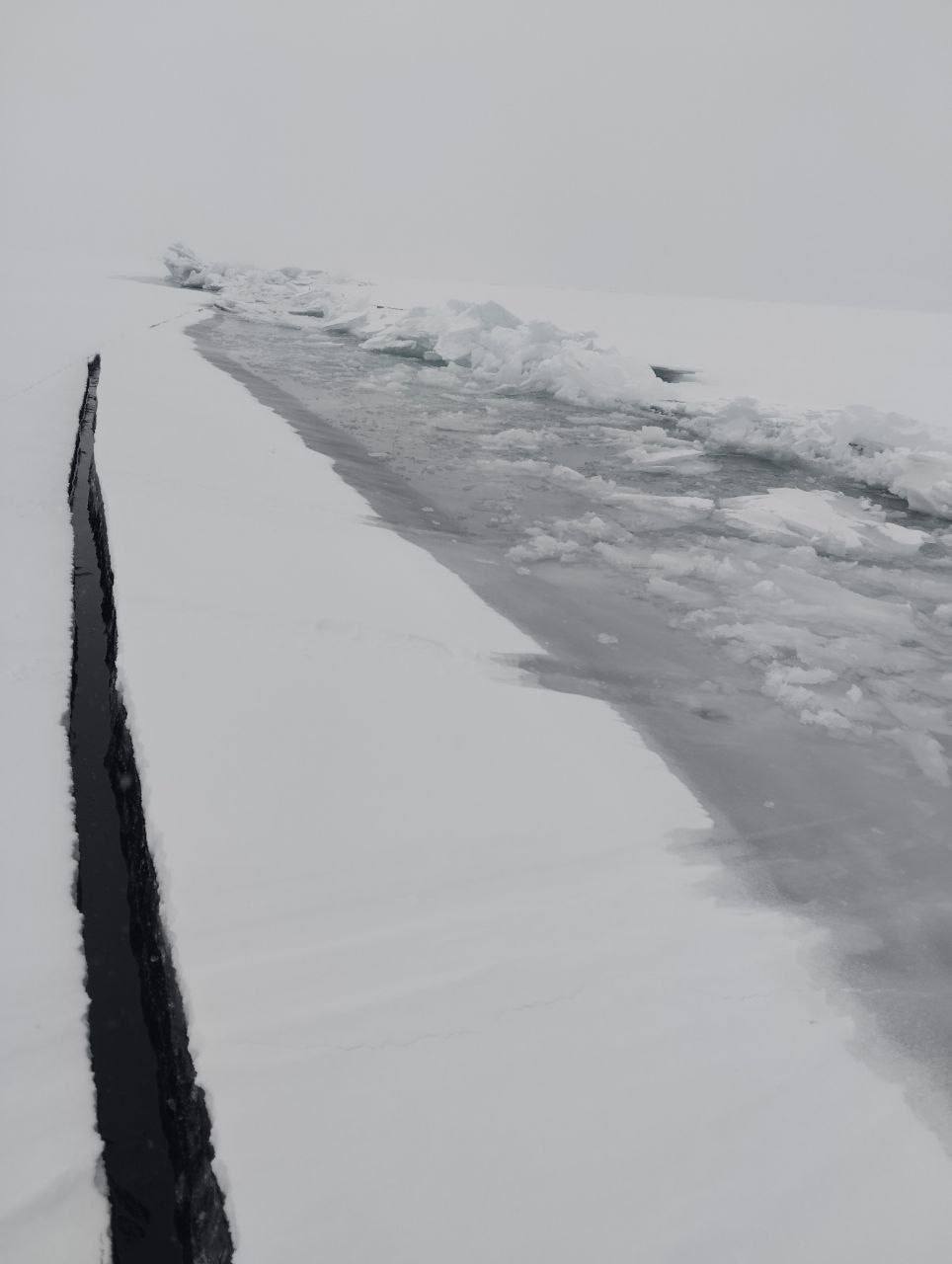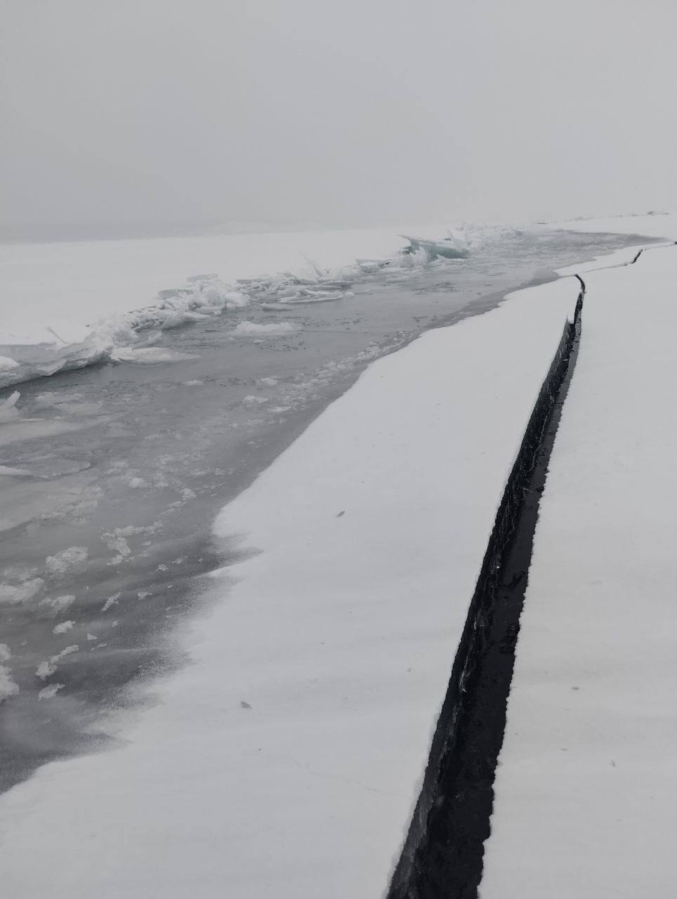 Об этом сообщили очевидцы, приславшие фотографии ледовой обстановки в