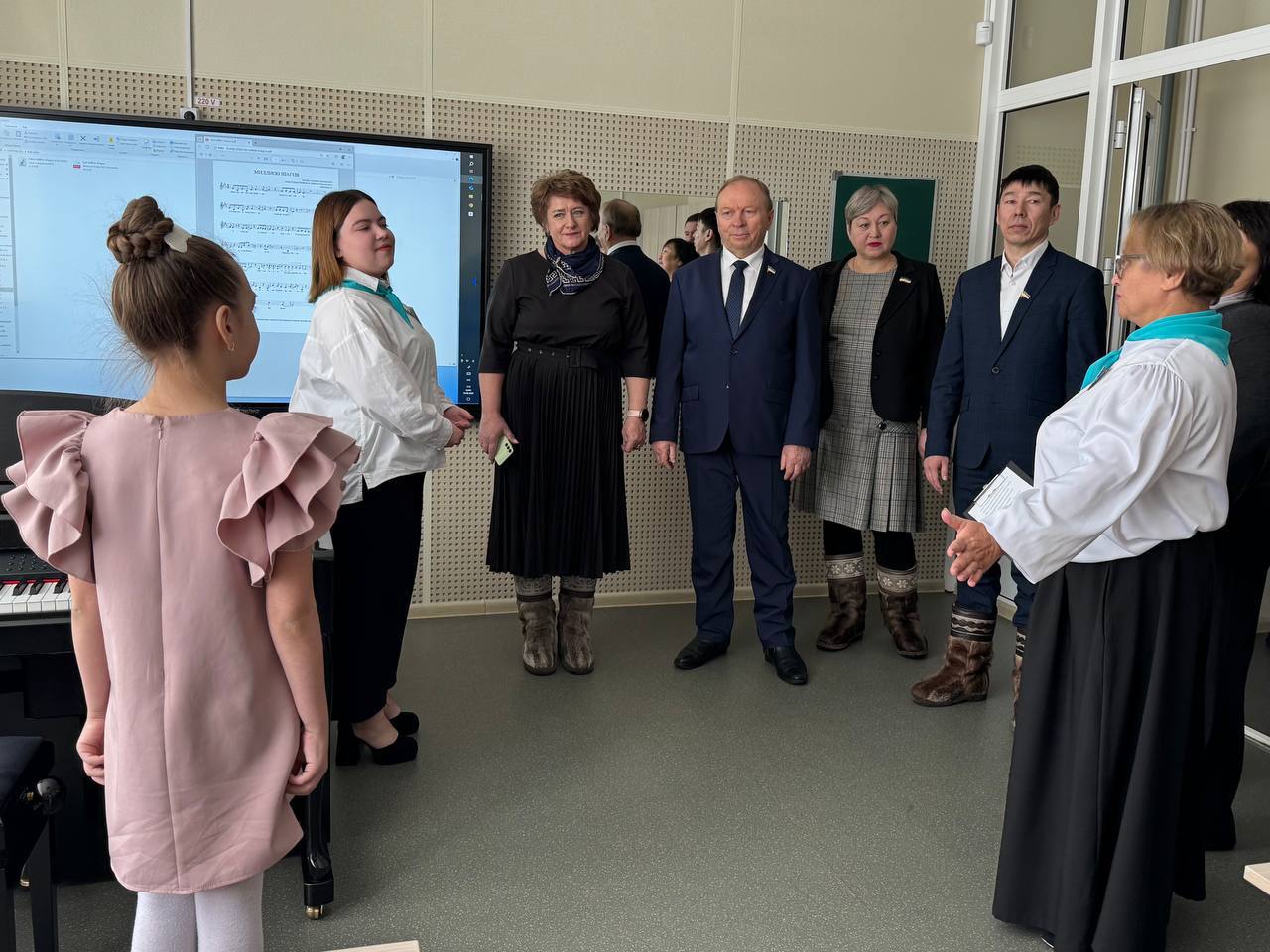 Следующим пунктом стала детская школа искусств. В новом современном здании тепло, уютно и в каждом кабинете царит творческая атмосфера. Строителями должное внимание уделено и доступной среде – кроме лифта здесь работает гусеничный подъёмник. Гости оценили условия для развития детей и посмотрели небольшой концерт.