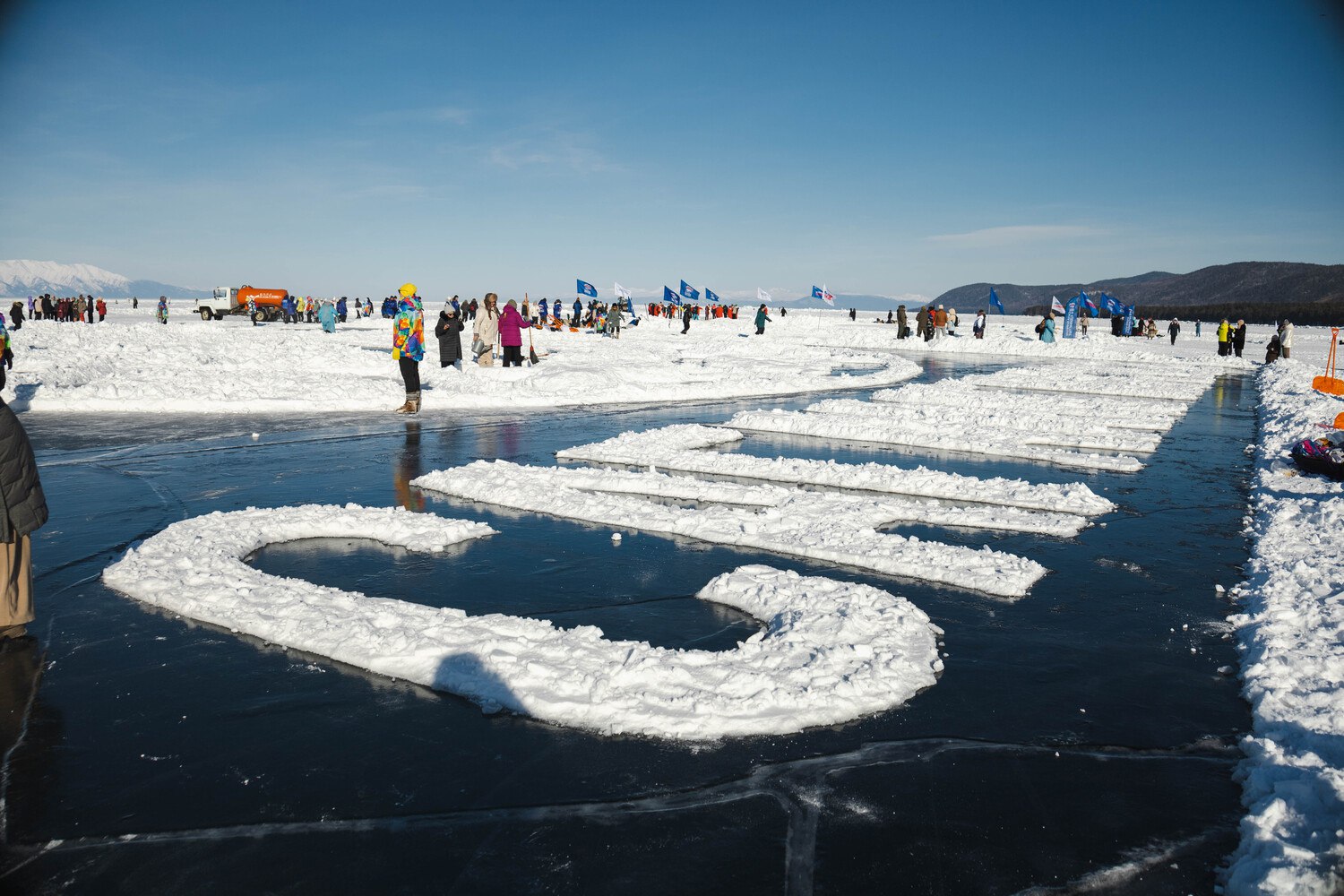 На Байкале нарисовали снежную открытку, которую видно из космоса. Фоторепортаж