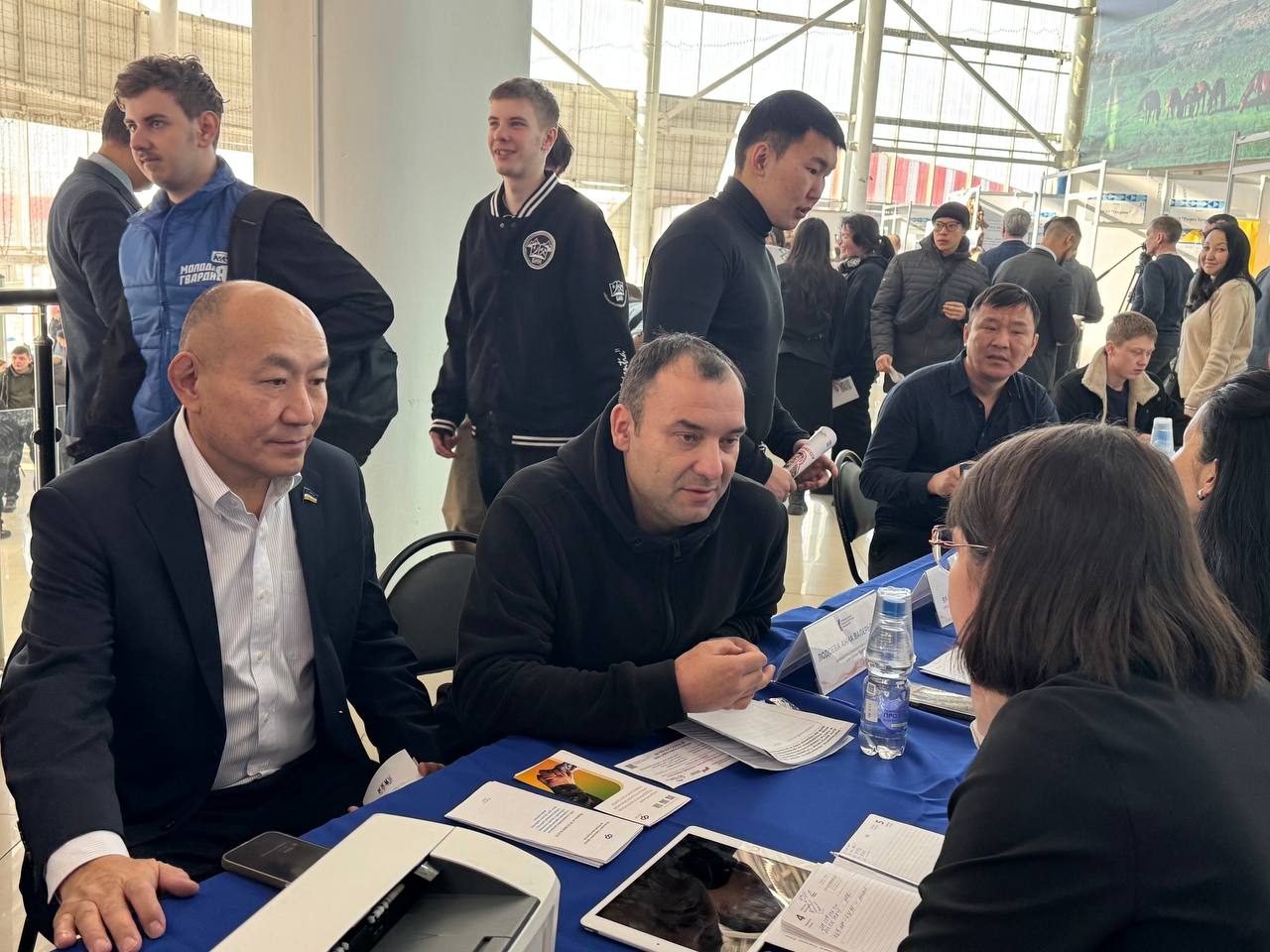 С утра в фойе ФСК работала республиканская ярмарка вакансий «Работа для СВОих», где около 50 предприятий представили свои вакансии, а образовательные организации предложили более 110 специальностей для обучения и переобучения участников спецоперации. Особый интерес вызвало направление «Кибербезопасность и программирование»: благодаря соглашению с группой компаний S7 ветераны могут бесплатно обучиться IT-профессиям с проживанием и последующим трудоустройством. Также работали консультационные площадки – Государственное юридическое бюро, минюст, прокуратура и страховая компания «СОГАЗ-Мед», где участники могли получить бесплатную юридическую помощь и консультации по системе ОМС.