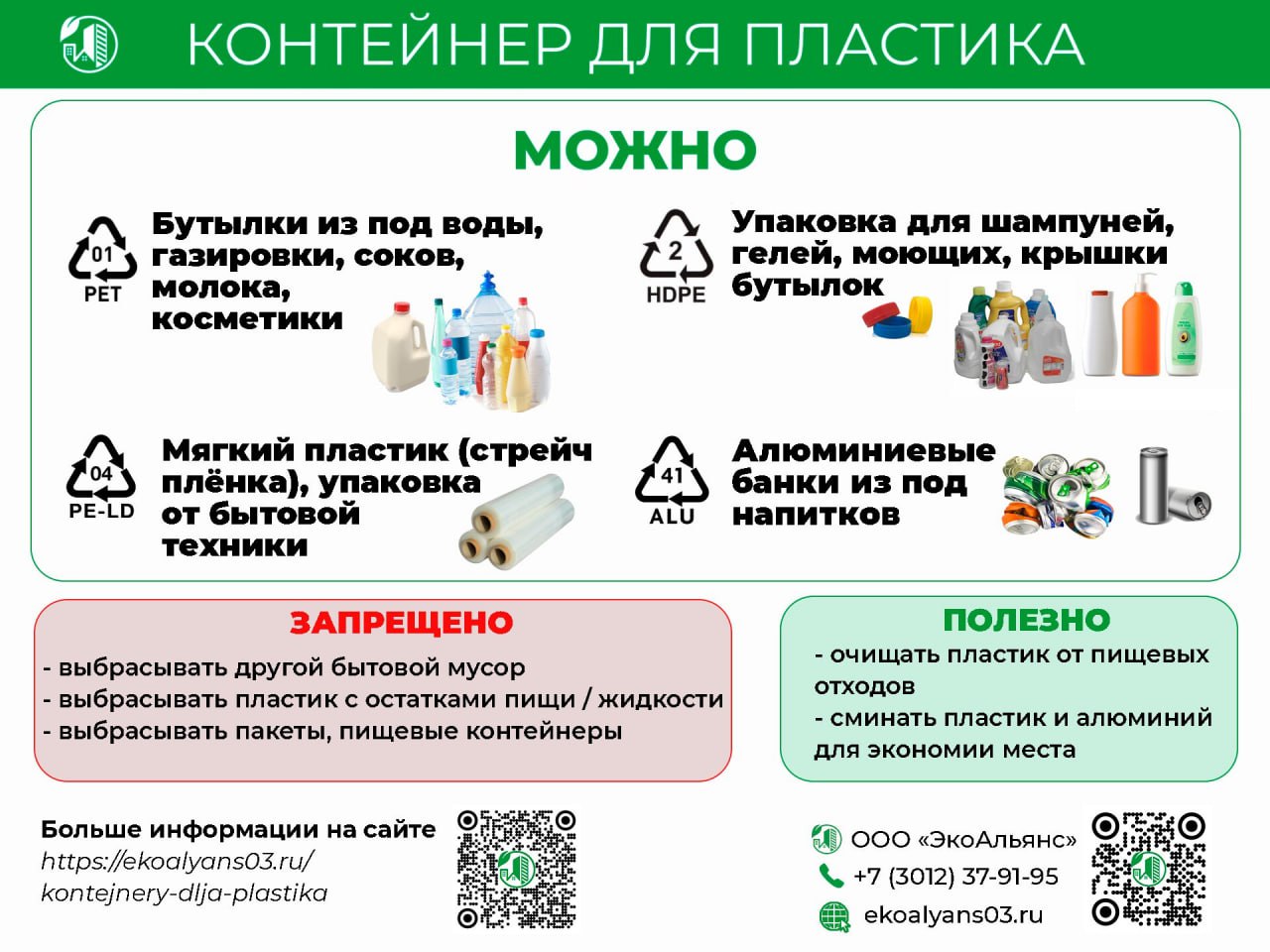 - очищать, так как загрязненный пластик, как правило с остатками пищи, не подходит для переработки