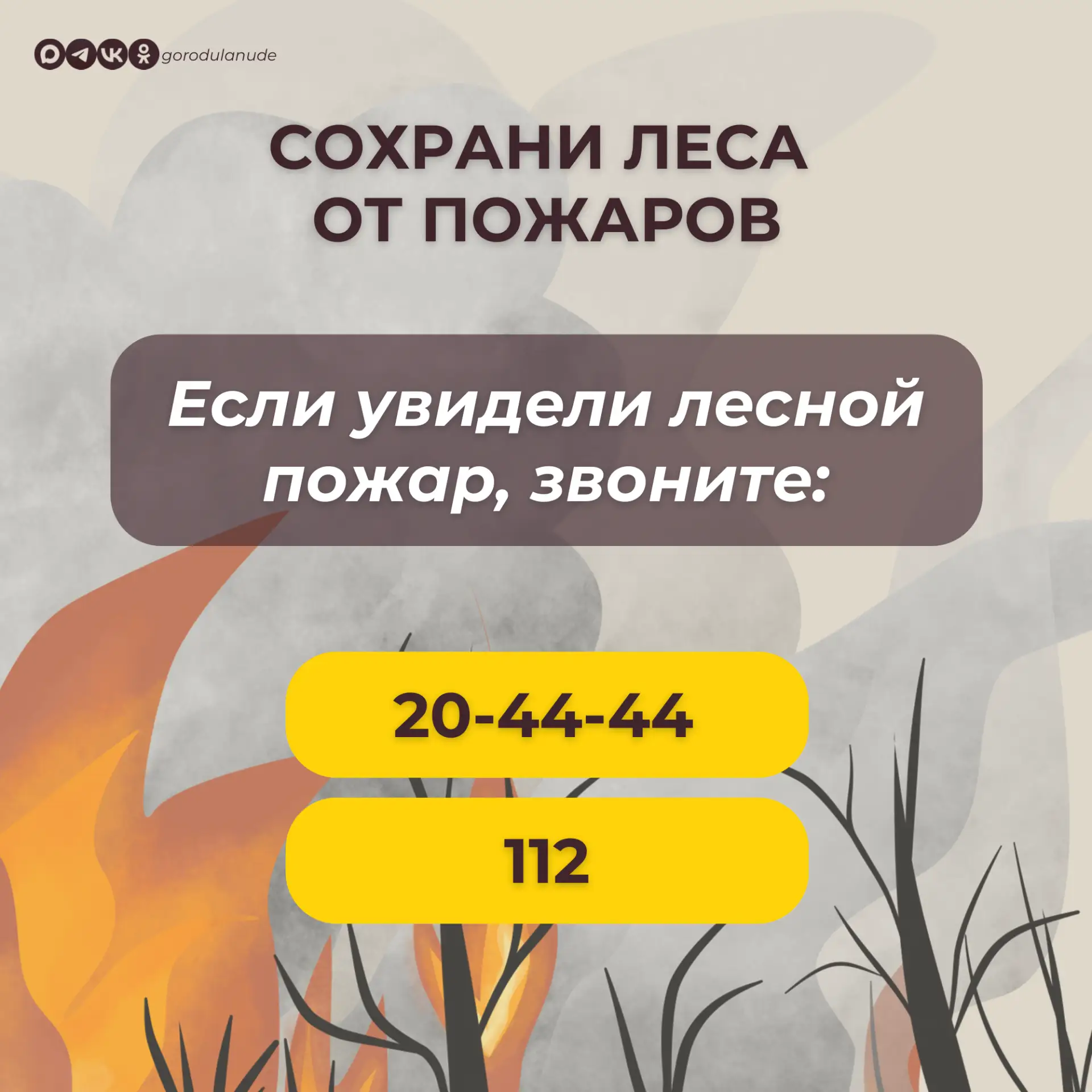 Если вы увидели лесной пожар, звоните по телефону 20-44-44 или «112».