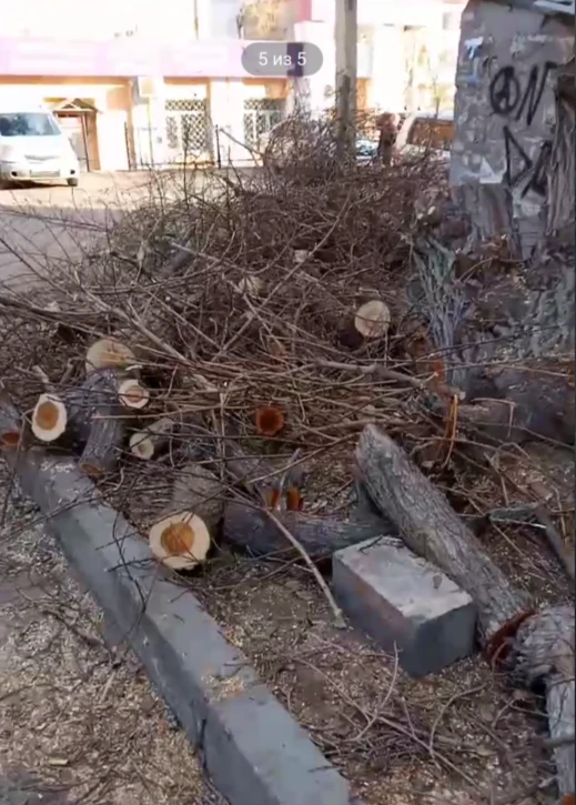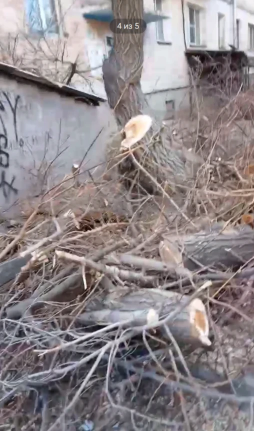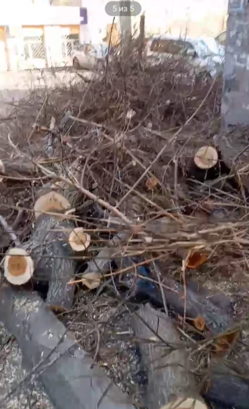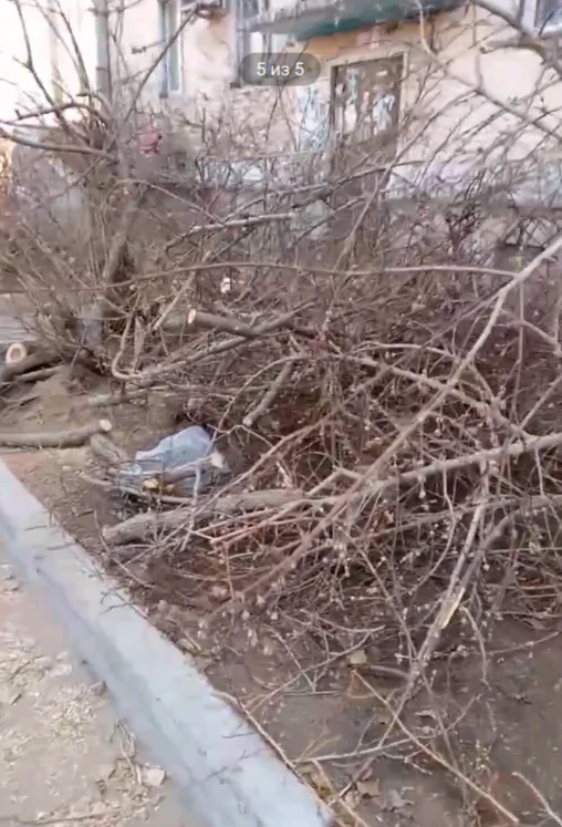 Бригада спилила деревья, оставив во дворе горы веток, создающие реальную угрозу пожарной безопасности