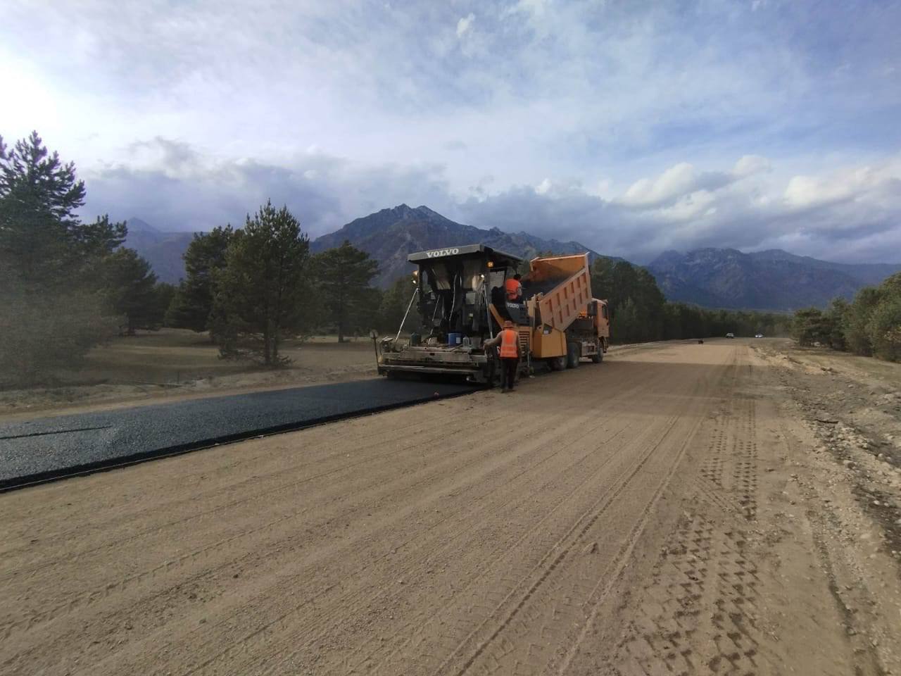 В Баргузинском районе Бурятии на дороге к буддийскому храму - дворцу богини Янжимы - начали укладывать асфальт.
