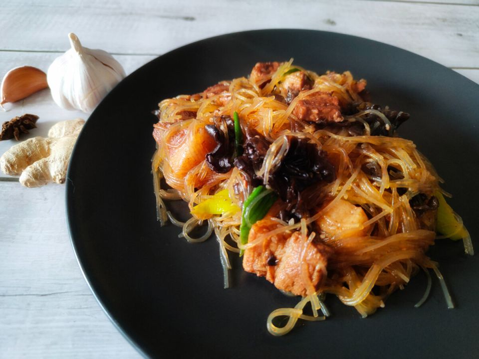 Приготавливая порей, его листья режутся наискосок, а затем все компоненты — свинина, фунчоза, грибы и лук — объединяются в воке. Прибавив огонь и тщательно перемешивая, блюдо готовится до испарения жидкости. В итоге получается невероятно аппетитное и ароматное кушанье, которое стоит попробовать каждому ценителю восточной кухни!