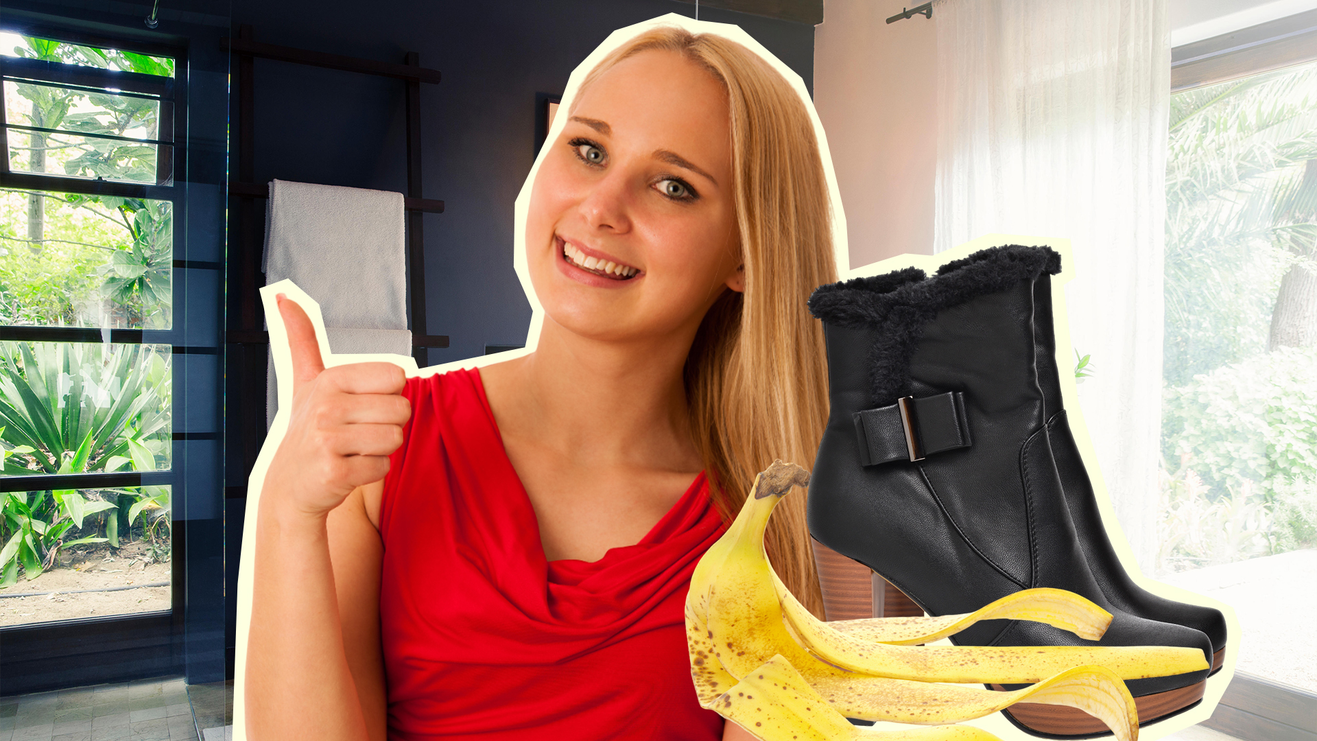 Просто возьмите кожуру и внутренней частью натрите обувь. Потом пройдитесь сверху влажной салфеткой. Подождите минутку, пока высохнет, и все. Ваша любимая пара туфель и ботинок будут блестеть, будто только из магазина.