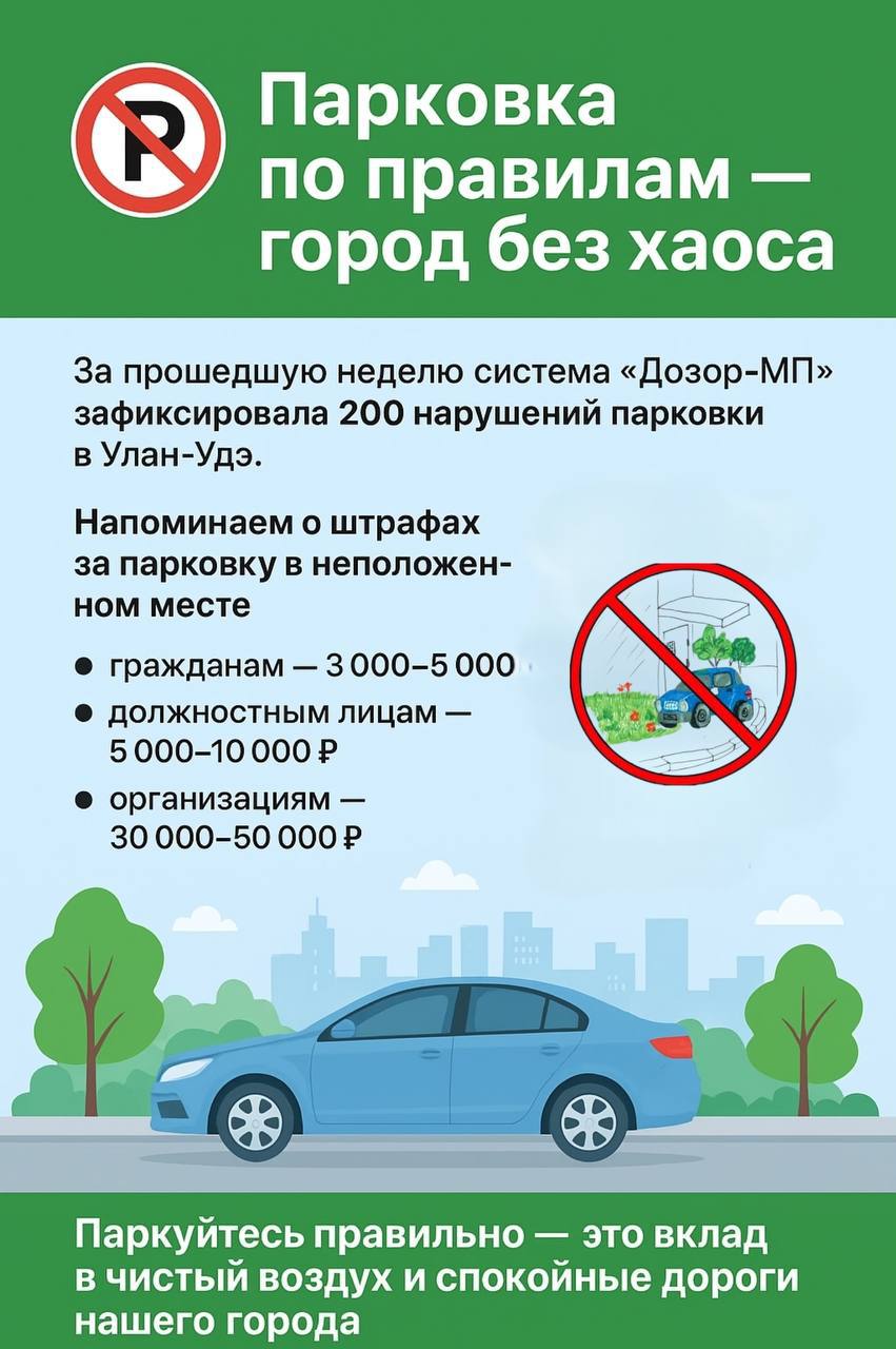 За прошедшую неделю система «Дозор-МП» зафиксировала в Улан-Удэ 200 нарушений парковки.