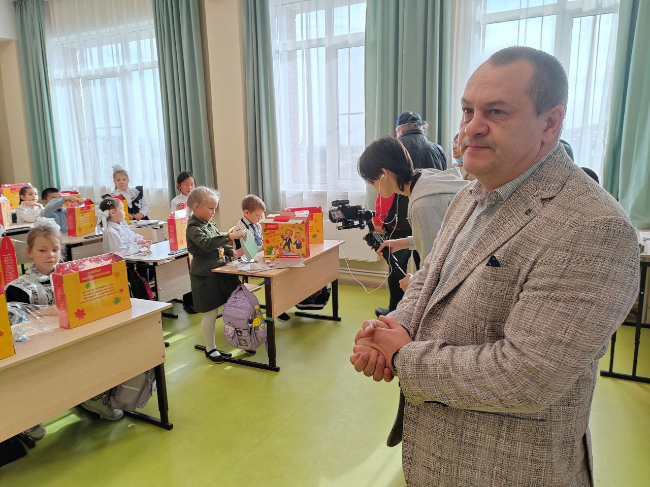 Несмотря на то, что с начала учебного года прошел всего месяц, было видно, что малыши освоились в новой школе, где свежестью и добротой дышит каждый уголок. Школа была построена два года назад по программе Национальные проекты России.