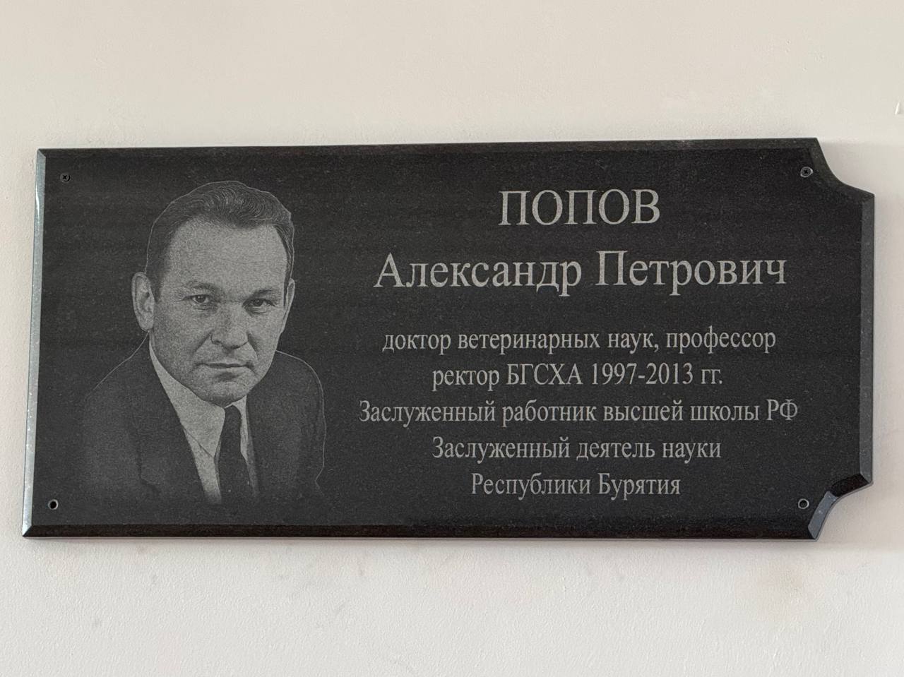 Вчера ему исполнилось бы 75 лет. В главном корпусе БГСХА, возле кабинета № 251, сегодня торжественно открыли мемориальную доску, которая будет напоминать студентам, коллективу и посетителям вуза о вкладе Александра Попова в развитие сельхозакадемии и всего аграрного комплекса республики.