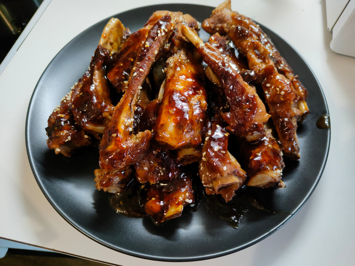 Блюдо готово! Для подачи лучше всего подойдут рис или лапша, которые помогут раскрыть всю насыщенность и вкус свиных рёбрышек в соусе терияки.
