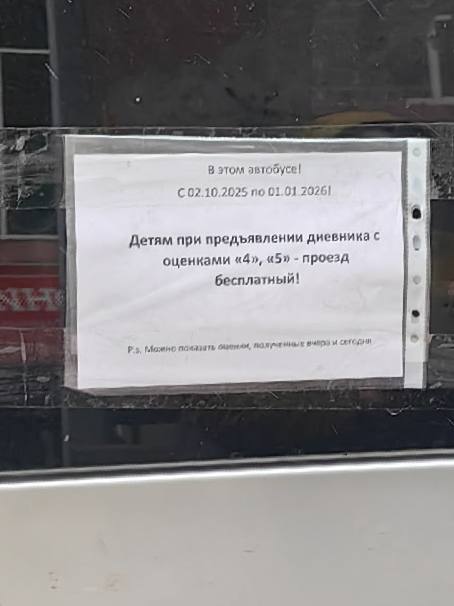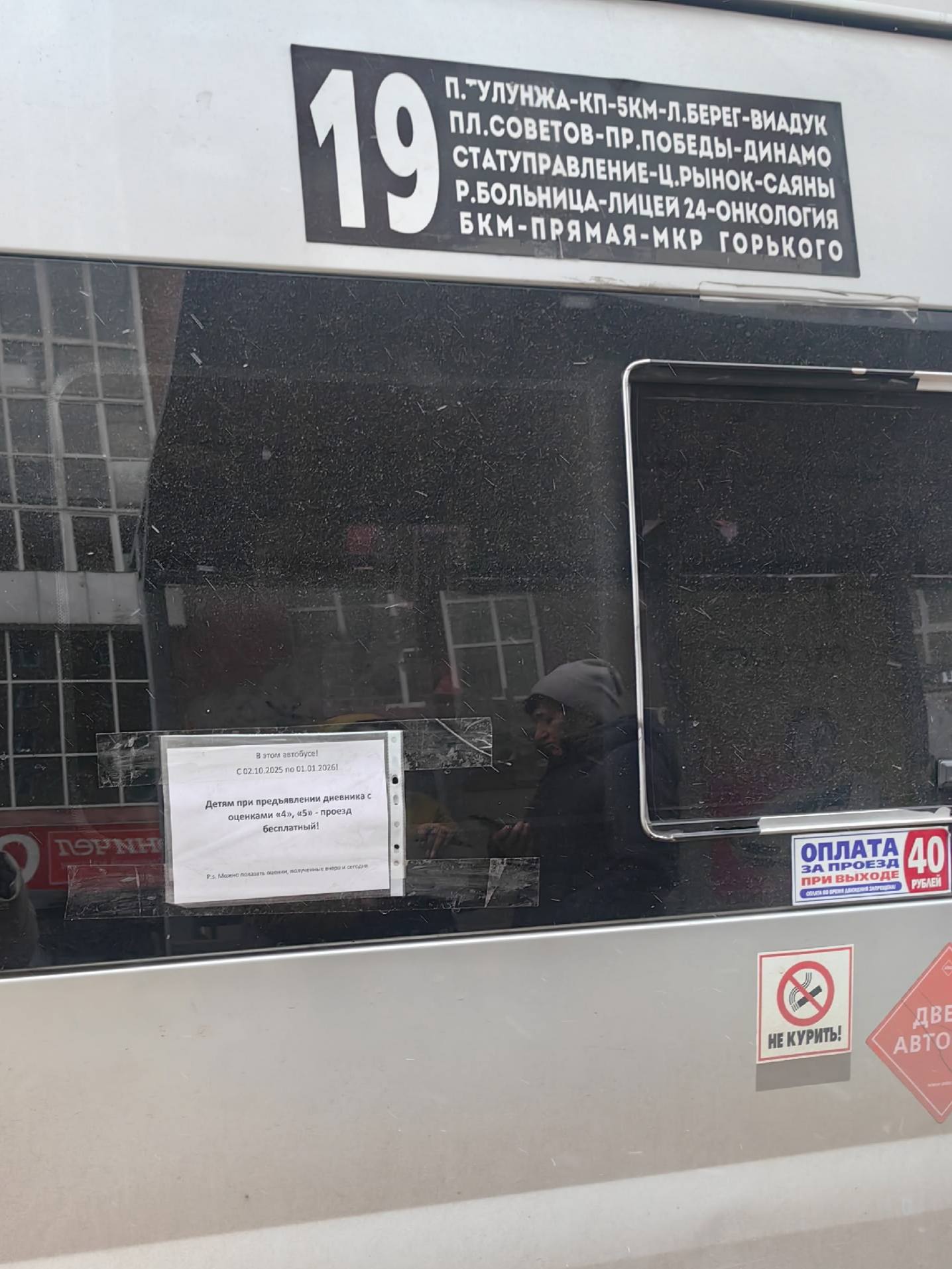 Один из водителей маршрута №19 решил поощрить старательных школьников и студентов. До конца года он разрешает им ездить бесплатно — нужно лишь показать дневник или зачётку с оценками «четыре» и «пять».