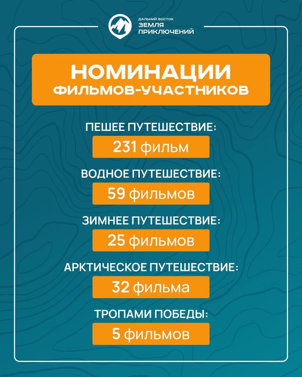 Полпред Президента России в ДФО Юрий Трутнев отмечает, что интерес к конкурсу, а значит и к Дальнему Востоку растет. Он проходит по 4 номинациям: пешее, водное, зимнее и арктическое путешествия. Популярнее всего «Пешее путешествие» — 231 фильм.