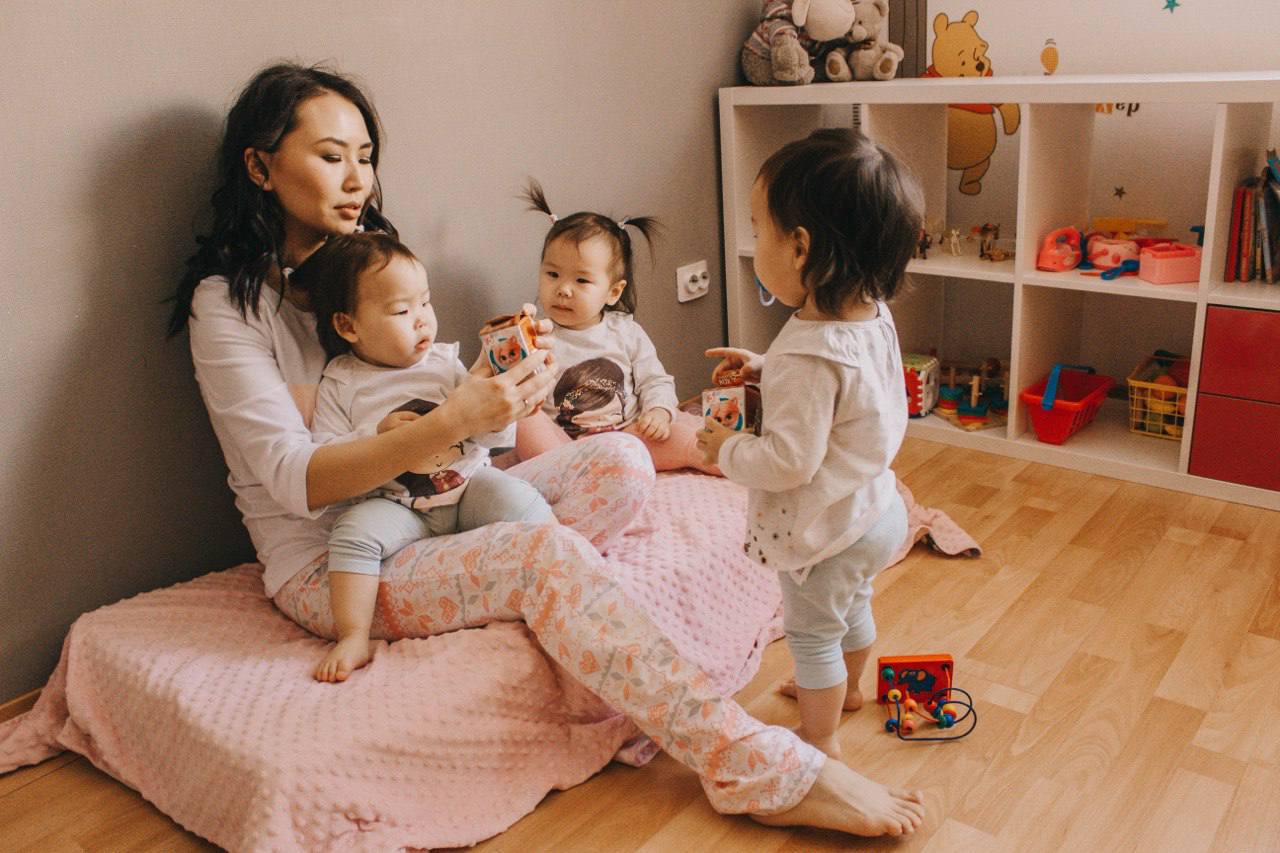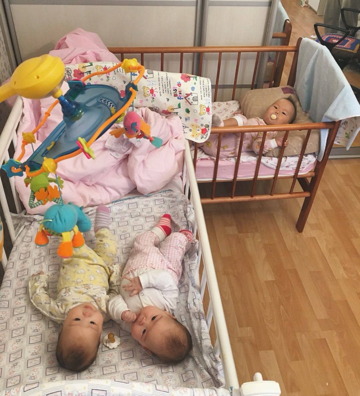 На семейных фотографиях так мило выглядят 3 маленьких человечка в одинаковых розовых комбинезонов, и рядом я, вроде даже улыбаюсь.