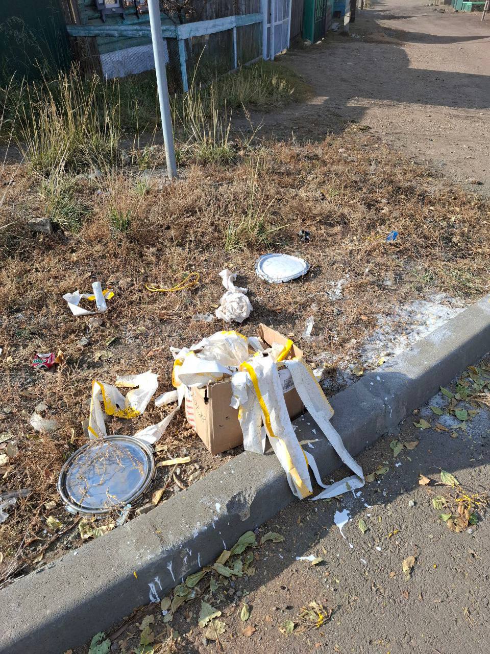 Жителей Гусиноозёрска возмутил мусор, оставленный после работ по нанесению дорожной разметки.