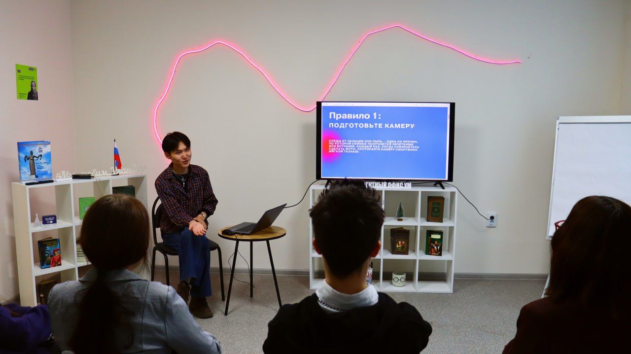 Ребят ознакомили с основными этапами фотосъёмки, принципами оформления публикаций в социальных сетях и инструментами для видеомонтажа. Также им презентовали медиа-зону Молодёжного центра.