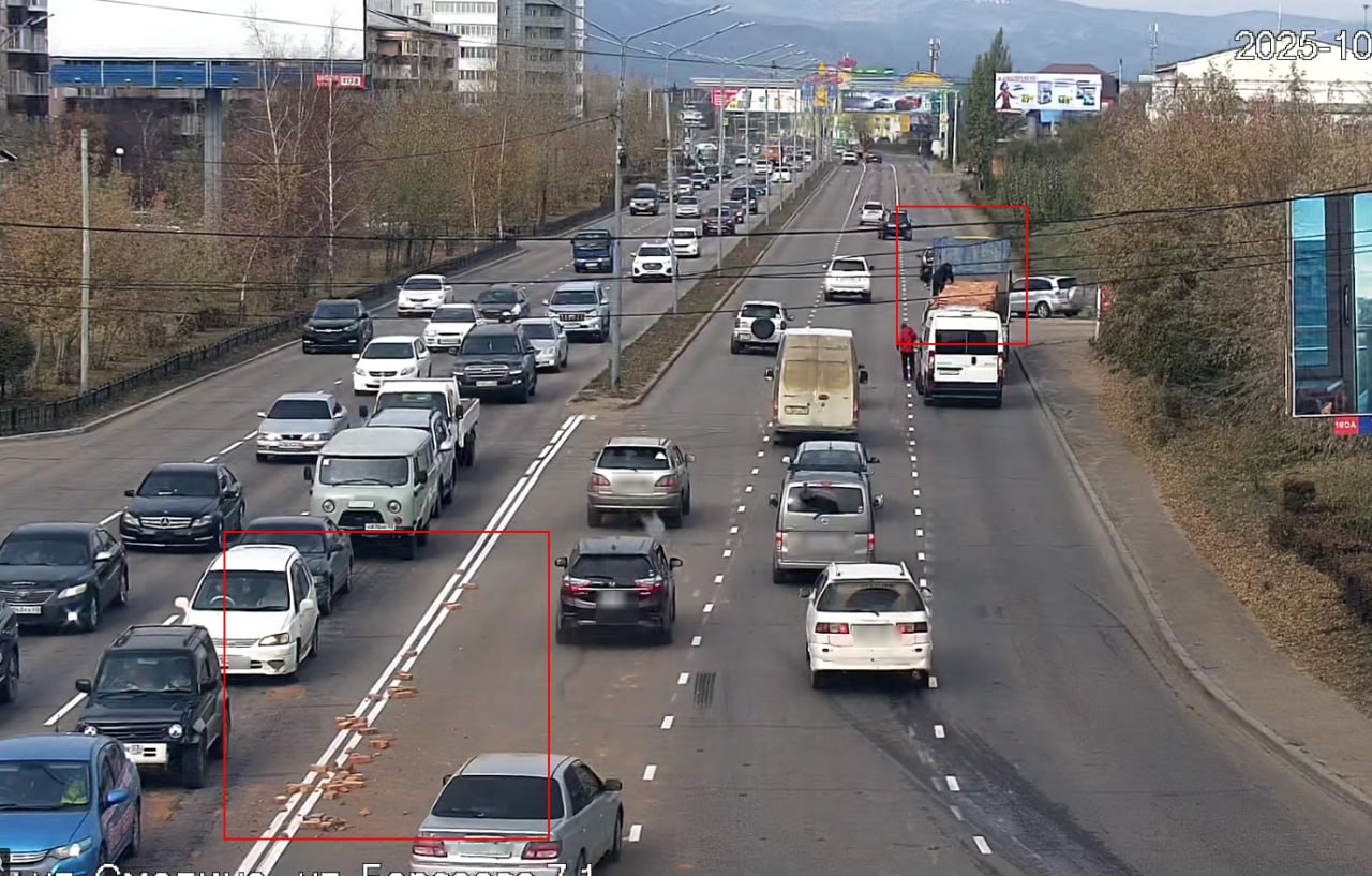 Сегодня на улице Борсоева кирпичи посыпались из кузова грузовика прямо на проезжую часть.