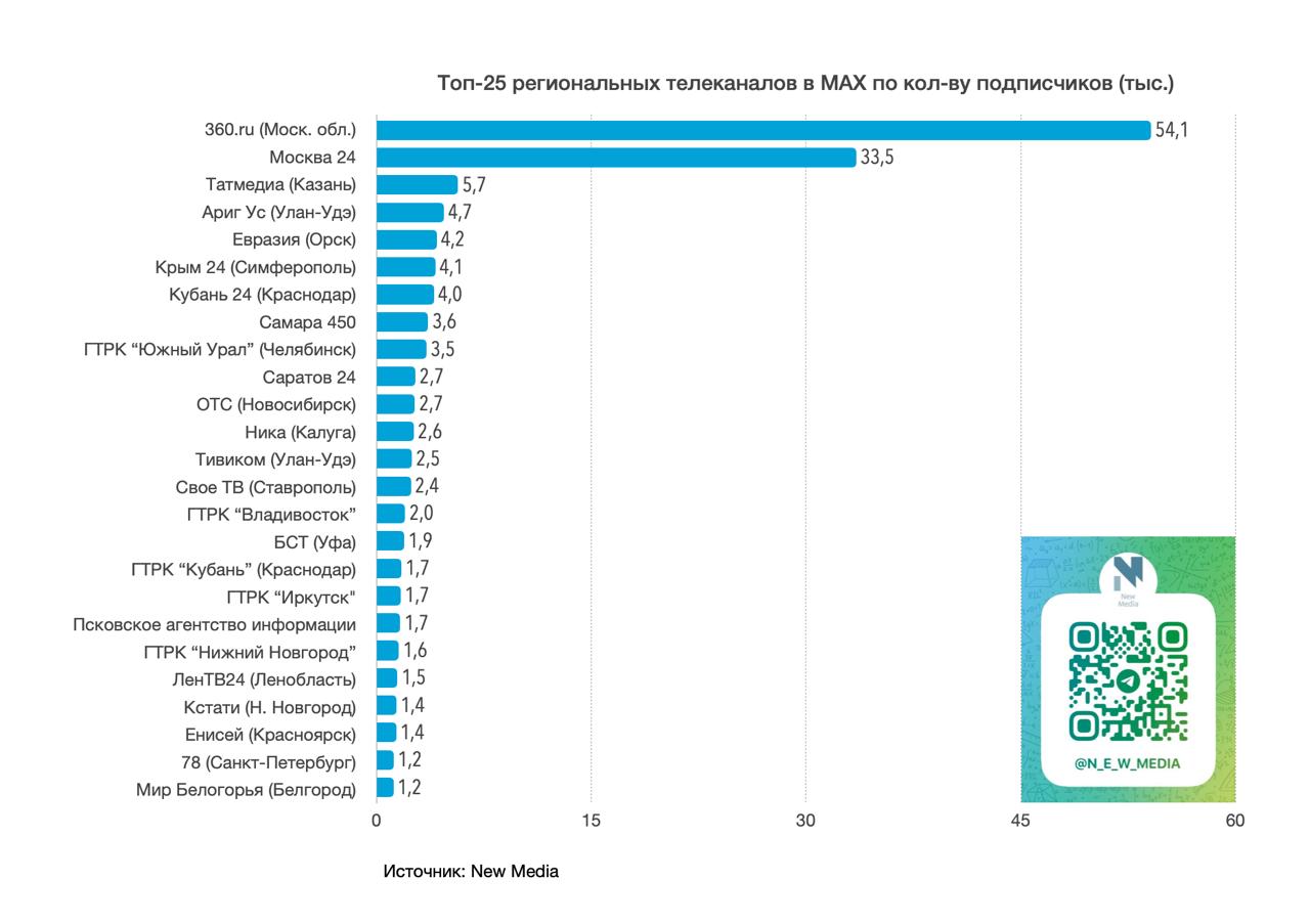 Наш канал занял 4 место по количеству подписчиков в новом национальном мессенджере, по данным New Media. Впереди только Москва и Казань