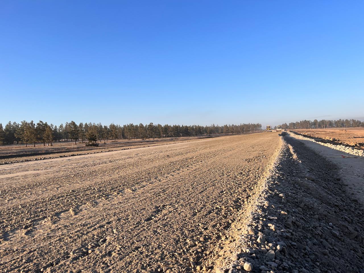 В Заиграевском районе Бурятии продолжается строительство подъездной дороги к свинокомплексу «Восточно-Сибирский». Там начинается укладка асфальта.