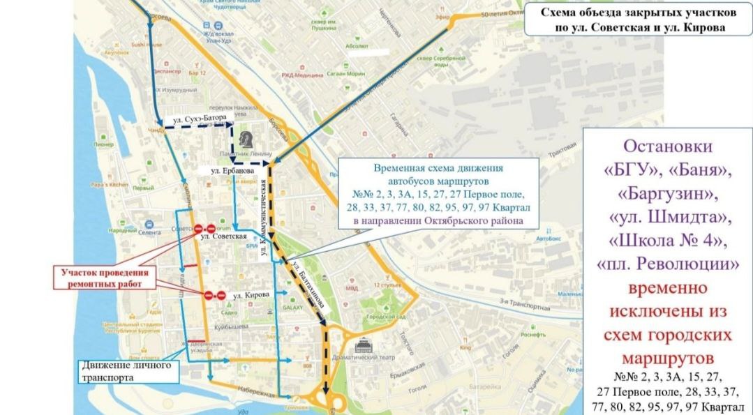 Со 2 ноября в центре Улан-Удэ перекроют движение на двух перекрестках