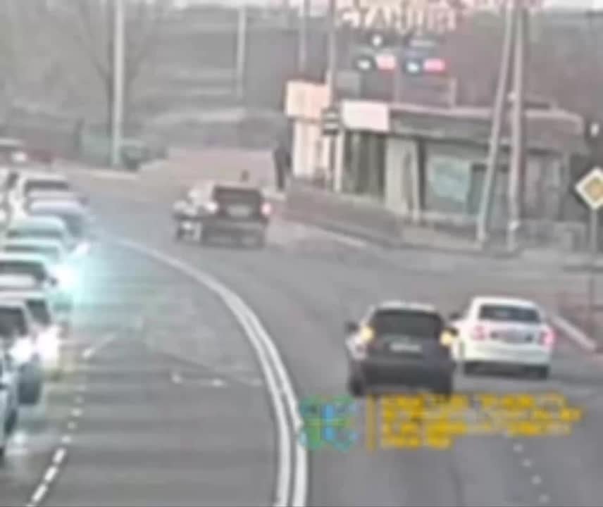 Внедорожник вылетел на остановку после столкновения с легковушкой