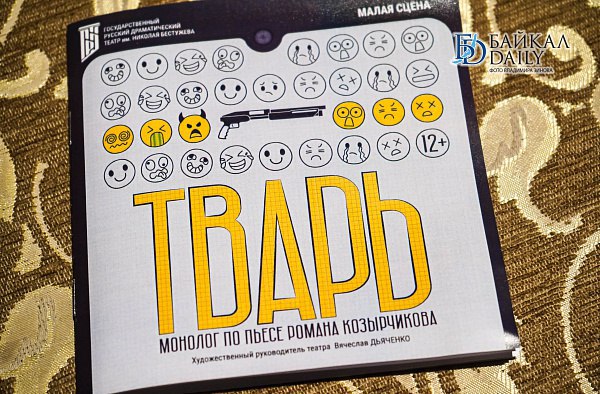 При аншлаге на Малой сцене Русского драмтеатра в Улан-Удэ прошла премьера спектакля «Тварь» по пьесе драматурга из Екатеринбурга Романа Козырчикова. Это монолог 15-летнего школьника Ромы, которого затравили одноклассники.