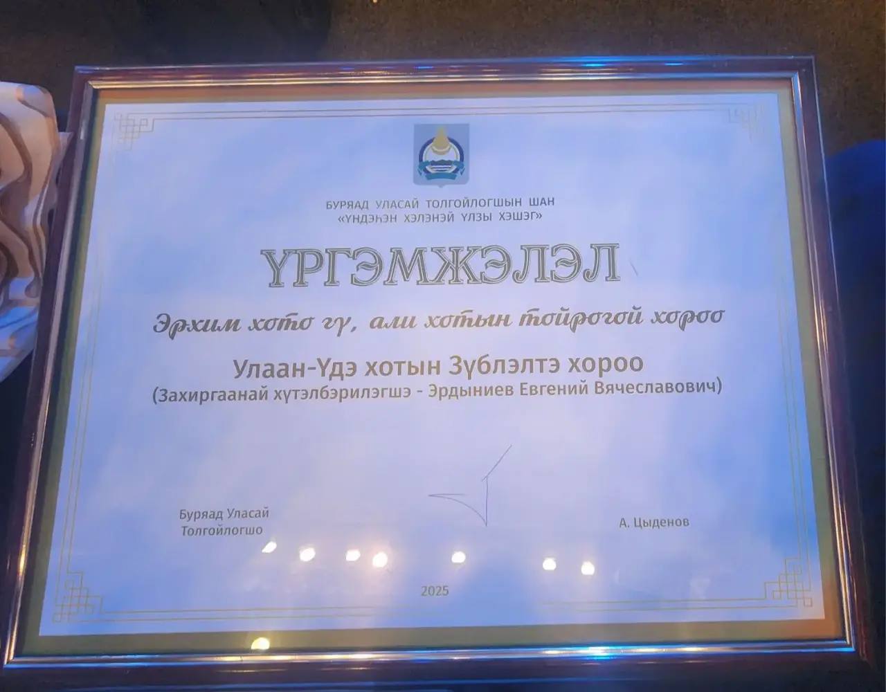 — Эта награда — признание значимости наших усилий в сохранении и развитии бурятского языка. Все мероприятия, которые мы проводим в рамках работы по развитию бурятского языка — Наадан Сурхарбаан, флэшмобы, конкурсы, перевод гимна Советского района — вылились в эту заслуженную награду. Будем продолжать работать, — сказал Евгений Эрдыниев.
