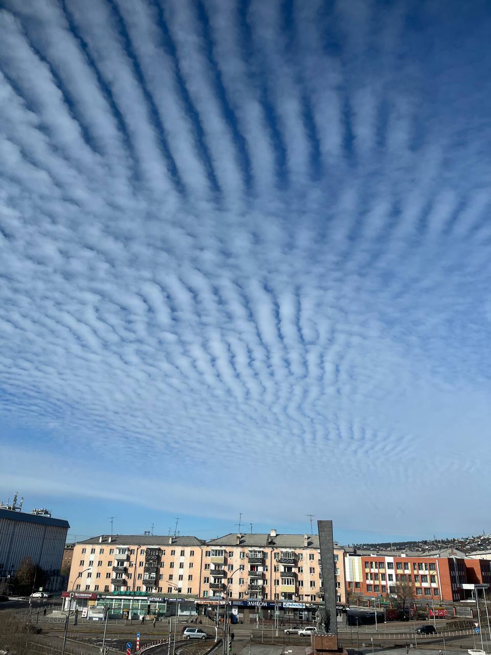 Перисто-кучевые облака проходят по небу над Улан-Удэ. В отличие от обычных облаков, они плывут достаточно высоко — в среднем от 6 до 11 километров.